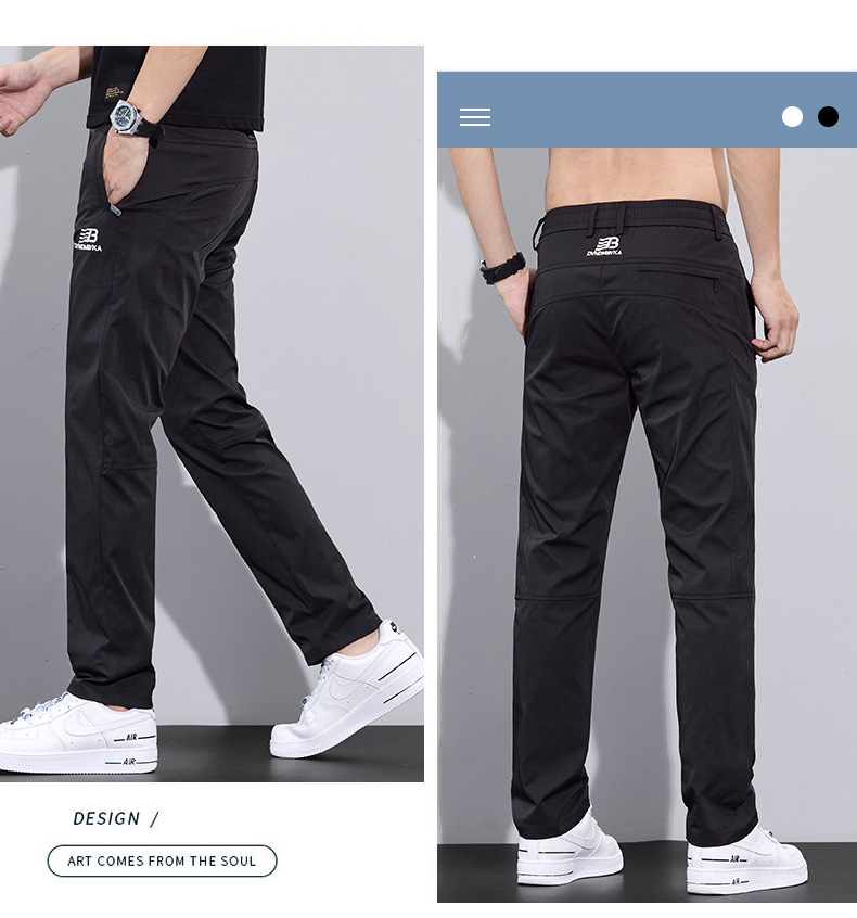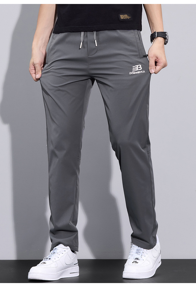 2025 여름 새로운 남자 캐주얼 바지 남자의 얇은 스트레치 빠른 건조 아이스 실크 바지 유행 올 매치 스트레이트 롱 바지스토어 가기