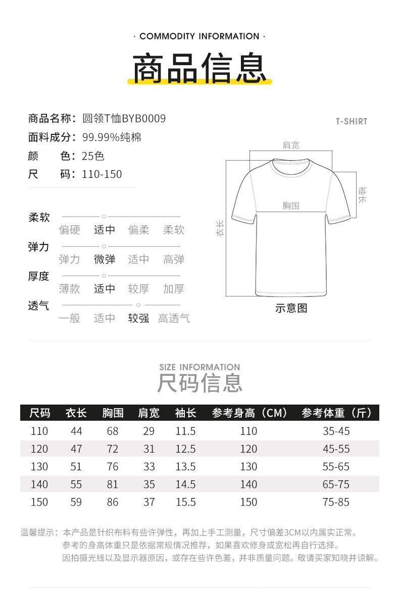 중국-독일 제조업체 직판 26수 180g 코마사 순면 단색 베이직 티셔츠 남녀 아동 캐주얼 만능템 BYB0009스토어 가기