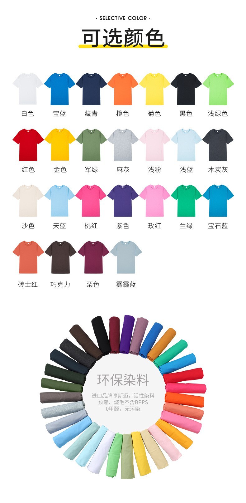 중국-독일 제조업체 직판 26수 180g 코마사 순면 단색 베이직 티셔츠 남녀 아동 캐주얼 만능템 BYB0009