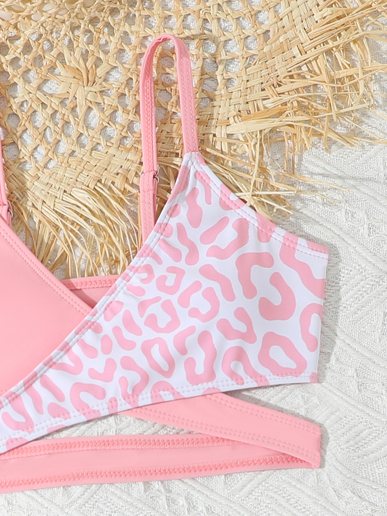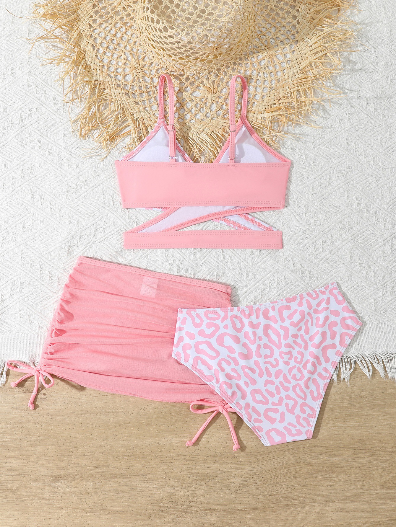 2025 년 대외 무역 새로운 어린이 수영복 귀여운 소녀 비키니 스플릿 3 피스 수영복 가슴 패드
