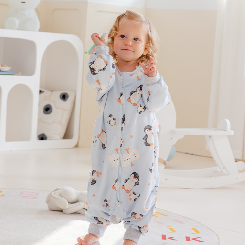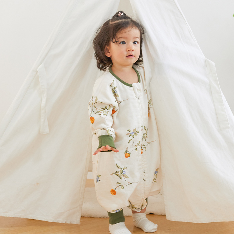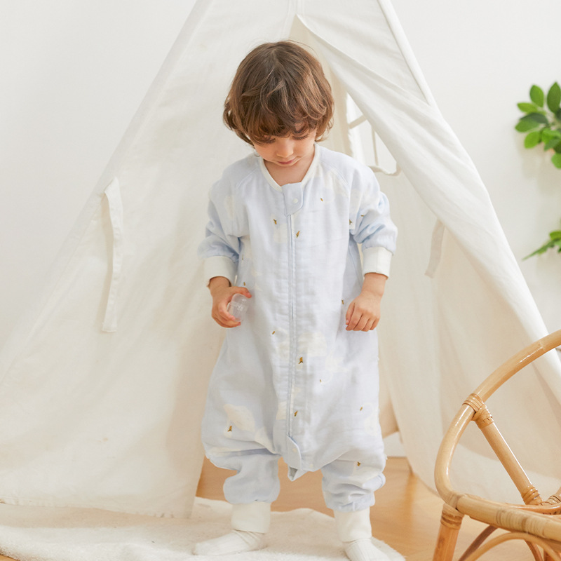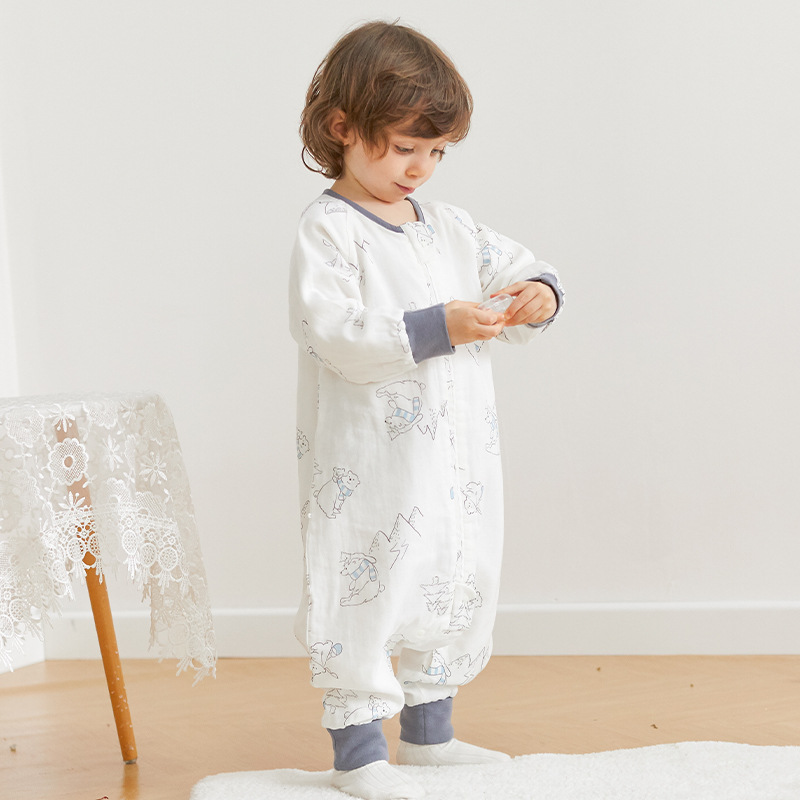 스플릿 레그 슬리핑 백 4 층 거즈 어린이 아기 봄과 가을 깜짝 놀랄만 한 신생아 병아리 클래스 A 모성 및 유아 면사스토어 가기