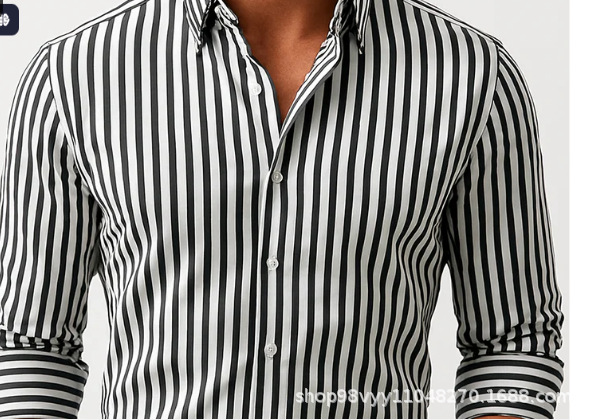 2025 유럽과 미국의 국경 간 아마존 스트라이프 남성 트렌디 긴팔 셔츠 3D 디지털 프린트 셔츠 잘 생긴 무료 배송스토어 가기
