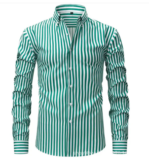 2025 유럽과 미국의 국경 간 아마존 스트라이프 남성 트렌디 긴팔 셔츠 3D 디지털 프린트 셔츠 잘 생긴 무료 배송