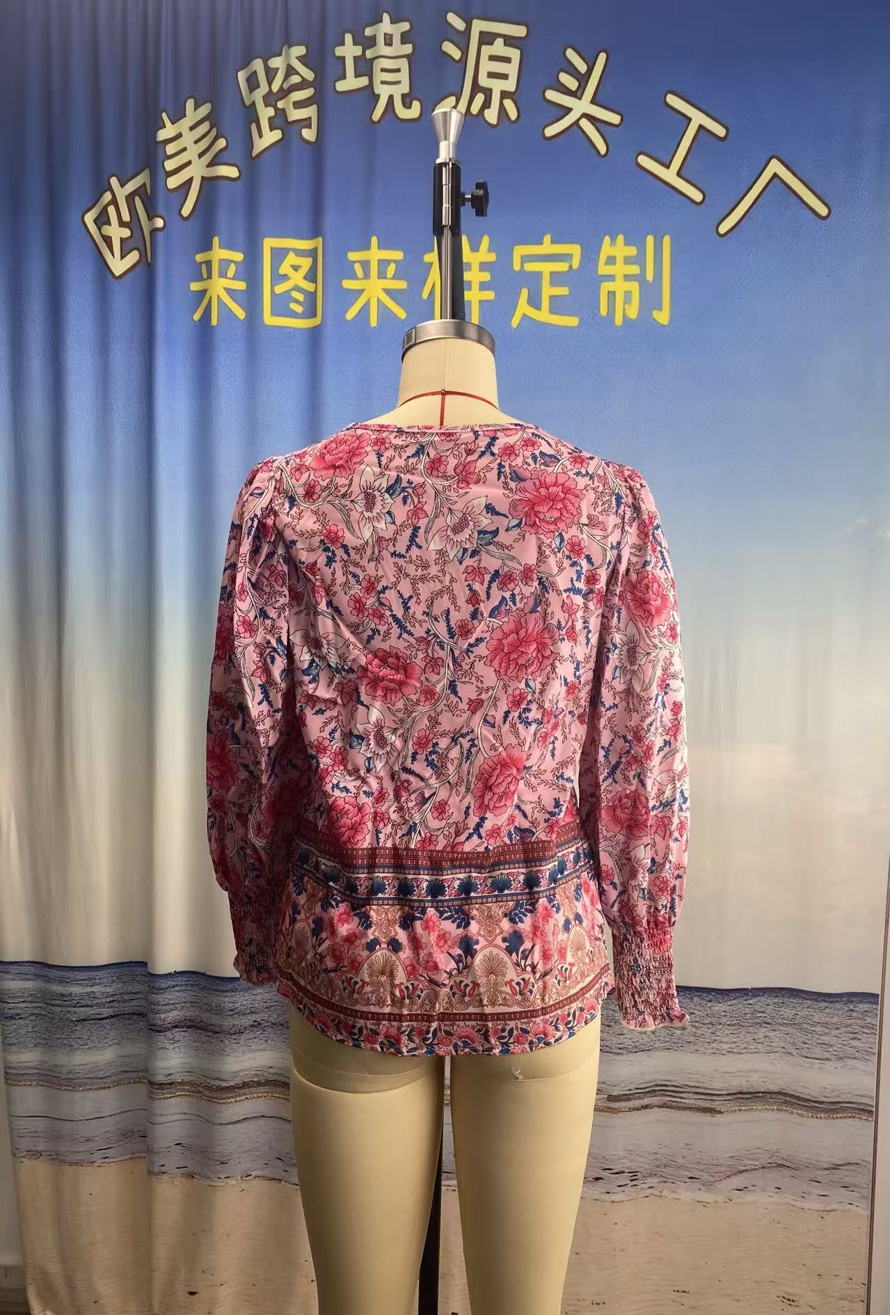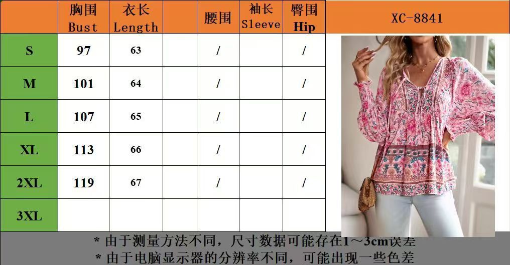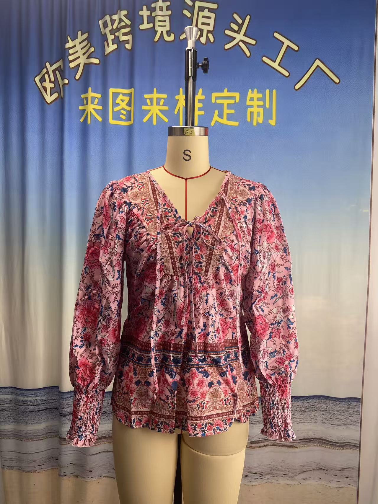 유럽과 미국의 국경 2025 봄과 여름 새로운 보헤미안 휴가 스타일 인쇄 V 넥 레이스 업 여성용 긴팔 셔츠스토어 가기