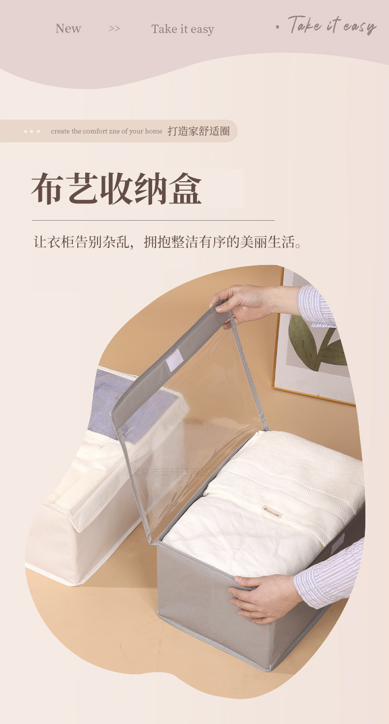 투명창이 있는 옥스포드 천 소재 옷바지 분류 수납함, 투명 뚜껑이 있는 수납 바구니, 수납용품스토어 가기
