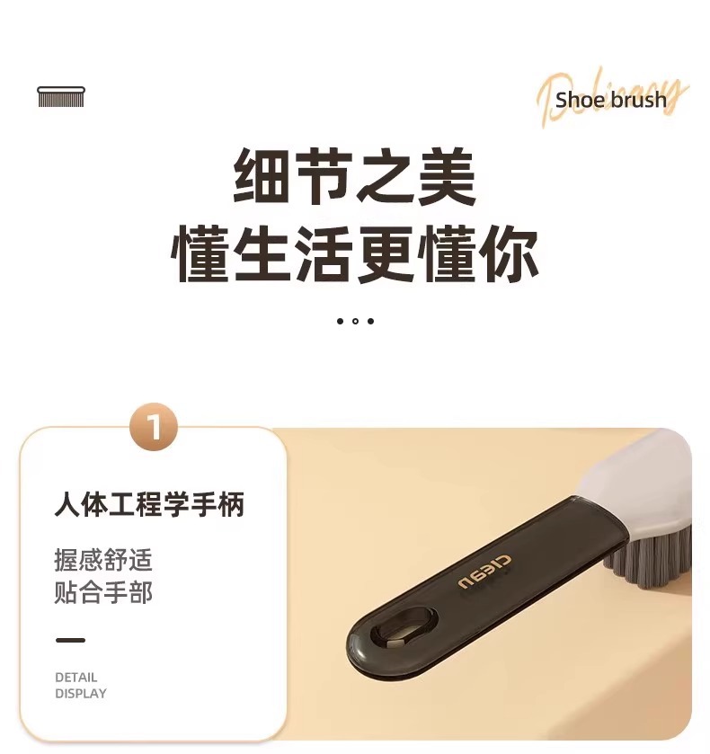 • 부드러운 강모 청소용 브러시 - 신발 브러시 - 회색 - 1개(박스형)