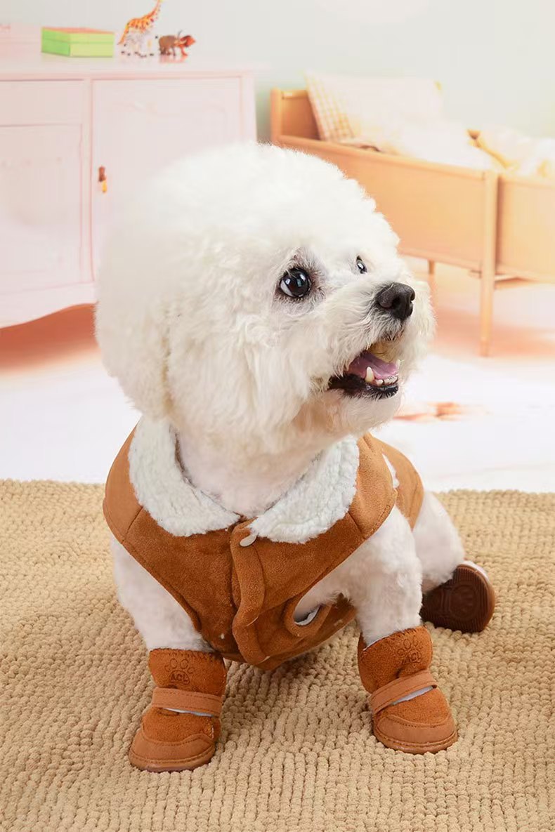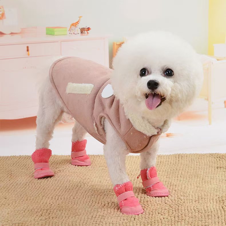 강아지 신발, 애완동물 면화, 가을 겨울 테디 슈즈, 포메라니안 비숑 강아지 겨울 스노우 부츠 4개 세트