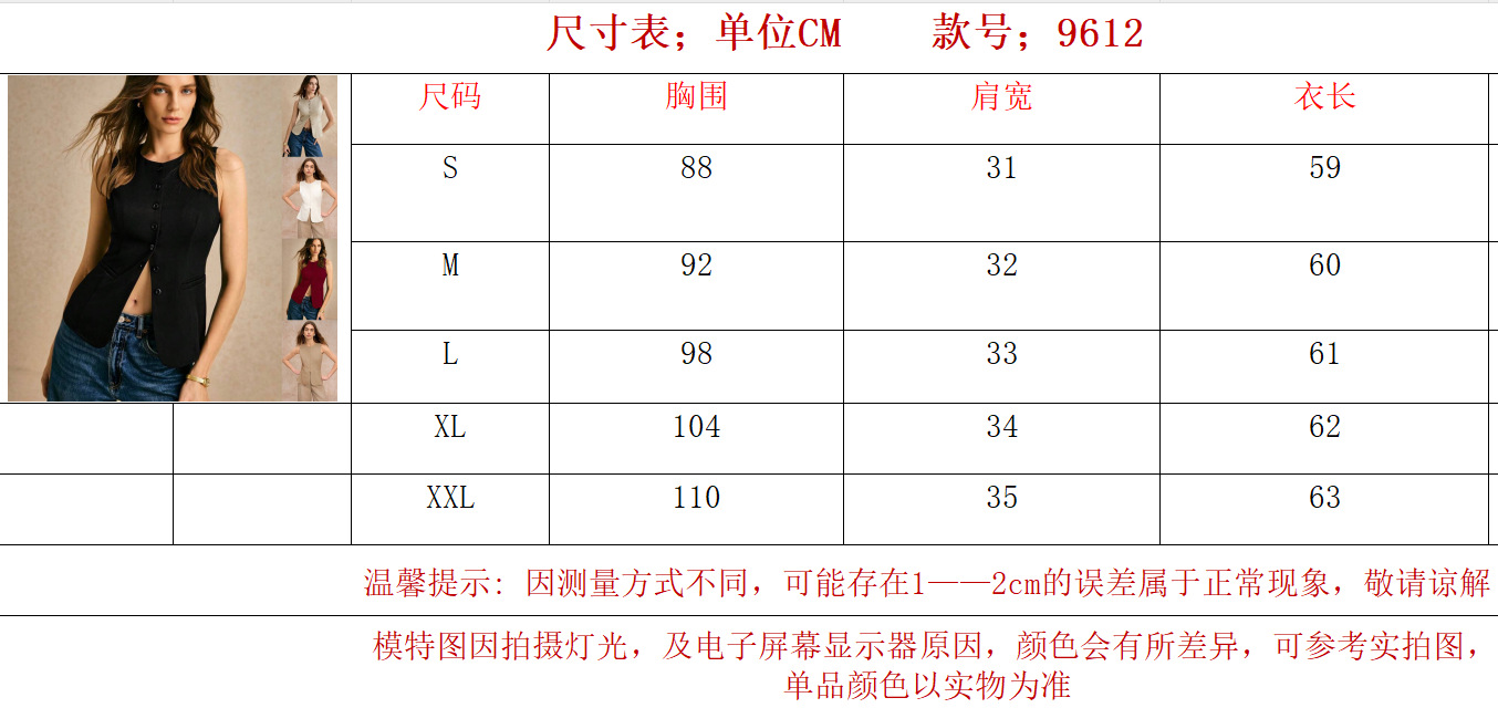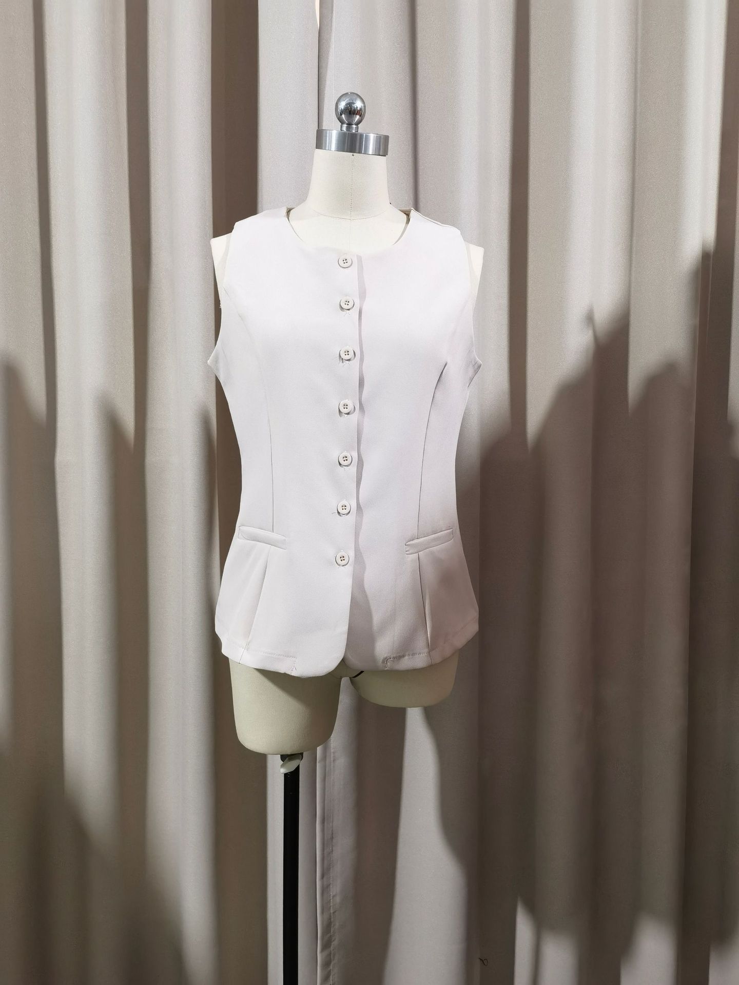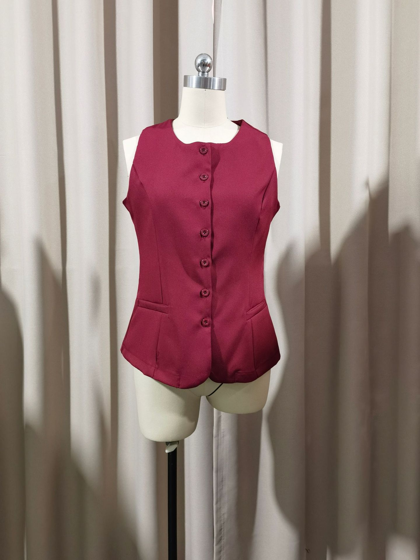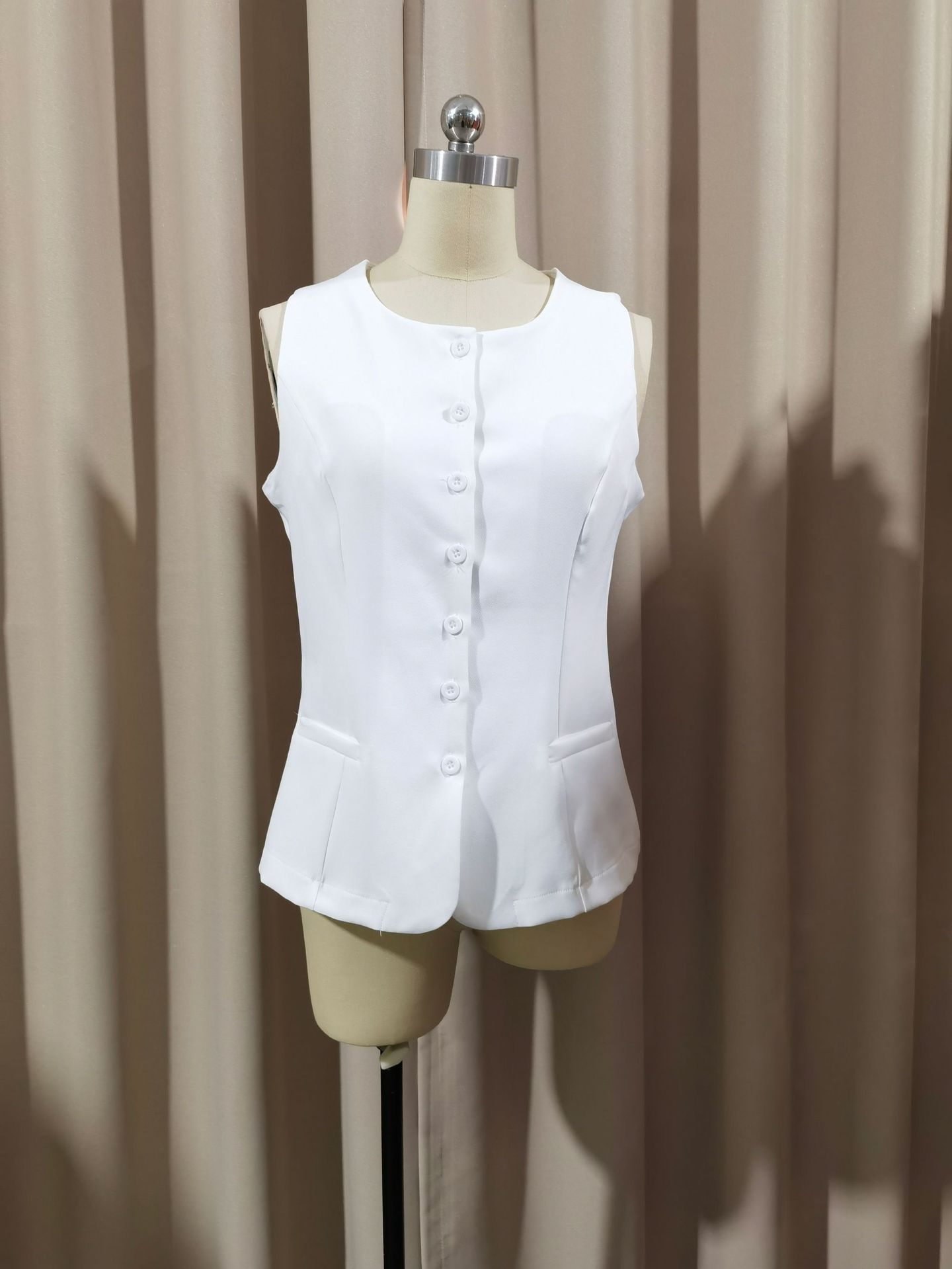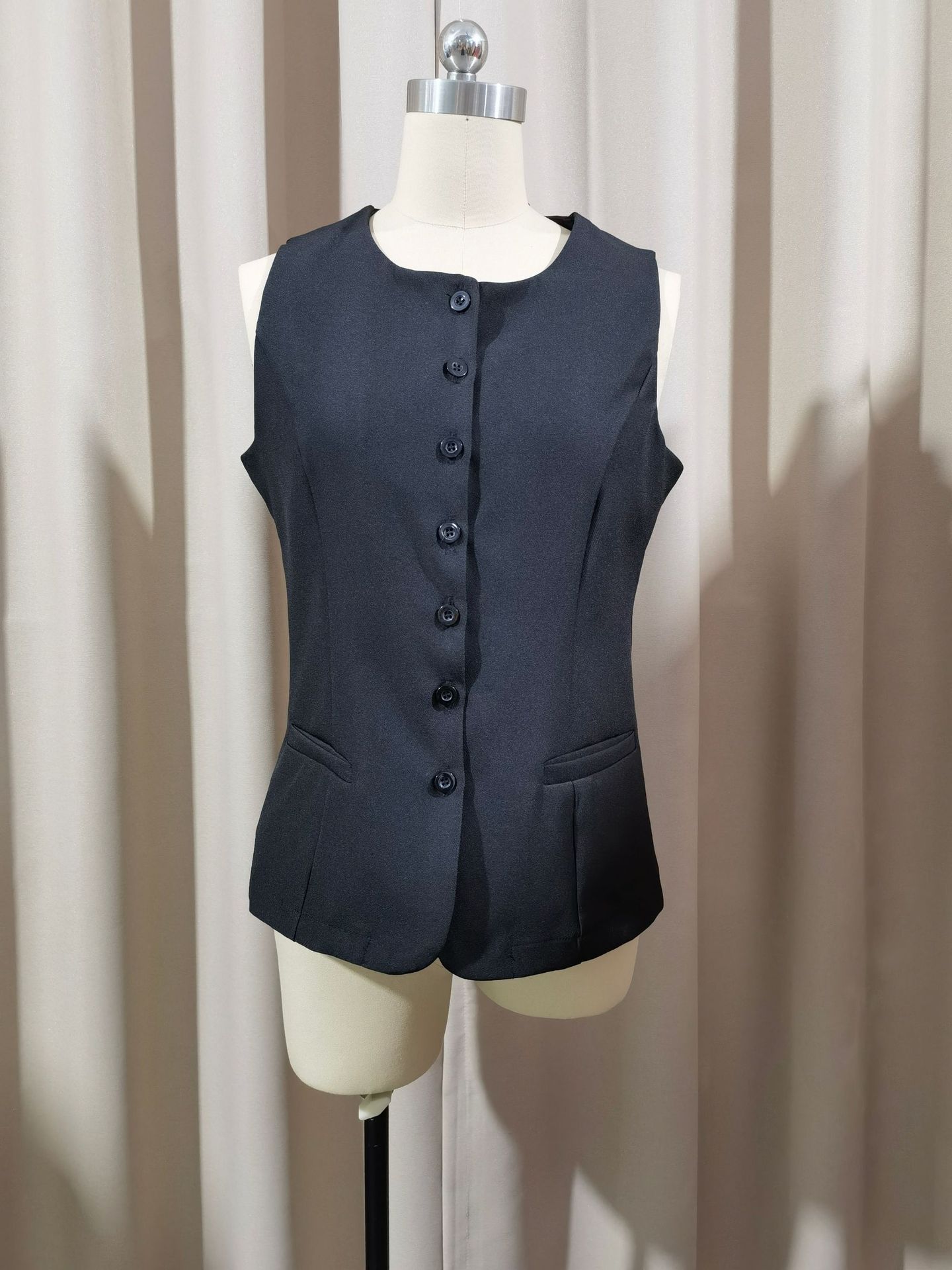 여름 유럽과 미국 여성의 국경 새로운 통근 간단한 패션 버튼 단색 조끼 캐주얼 탑 라운드 넥 조끼