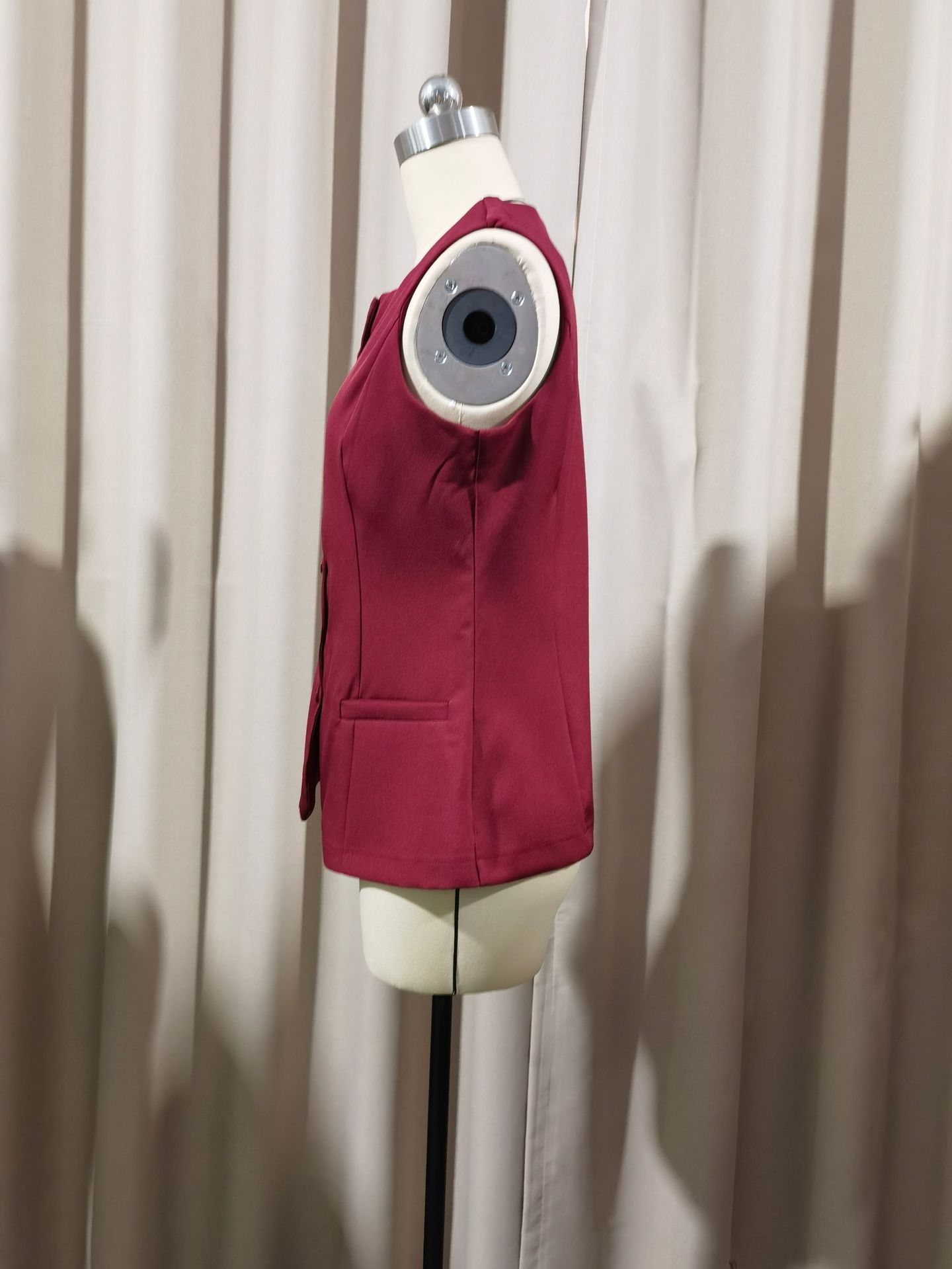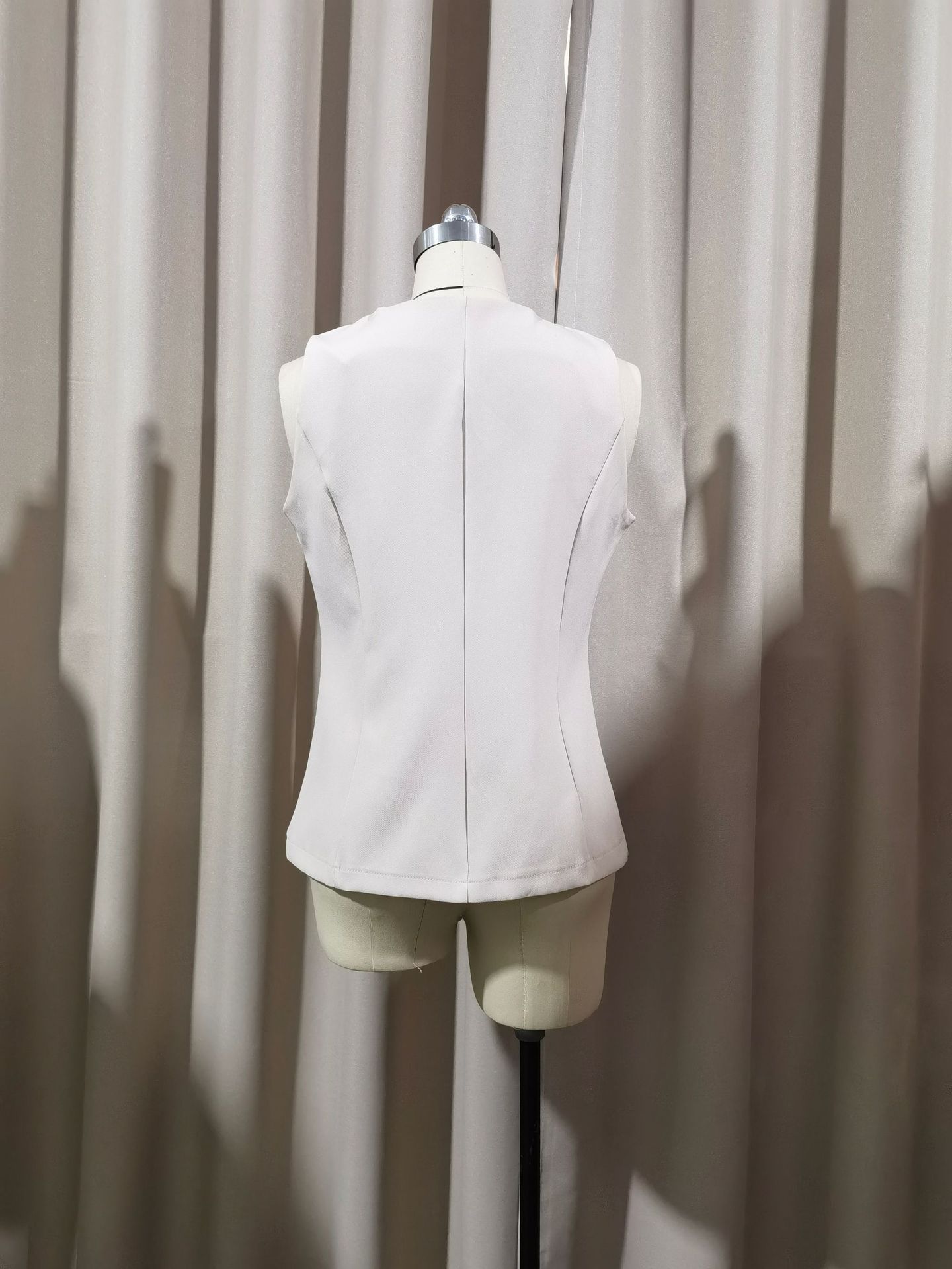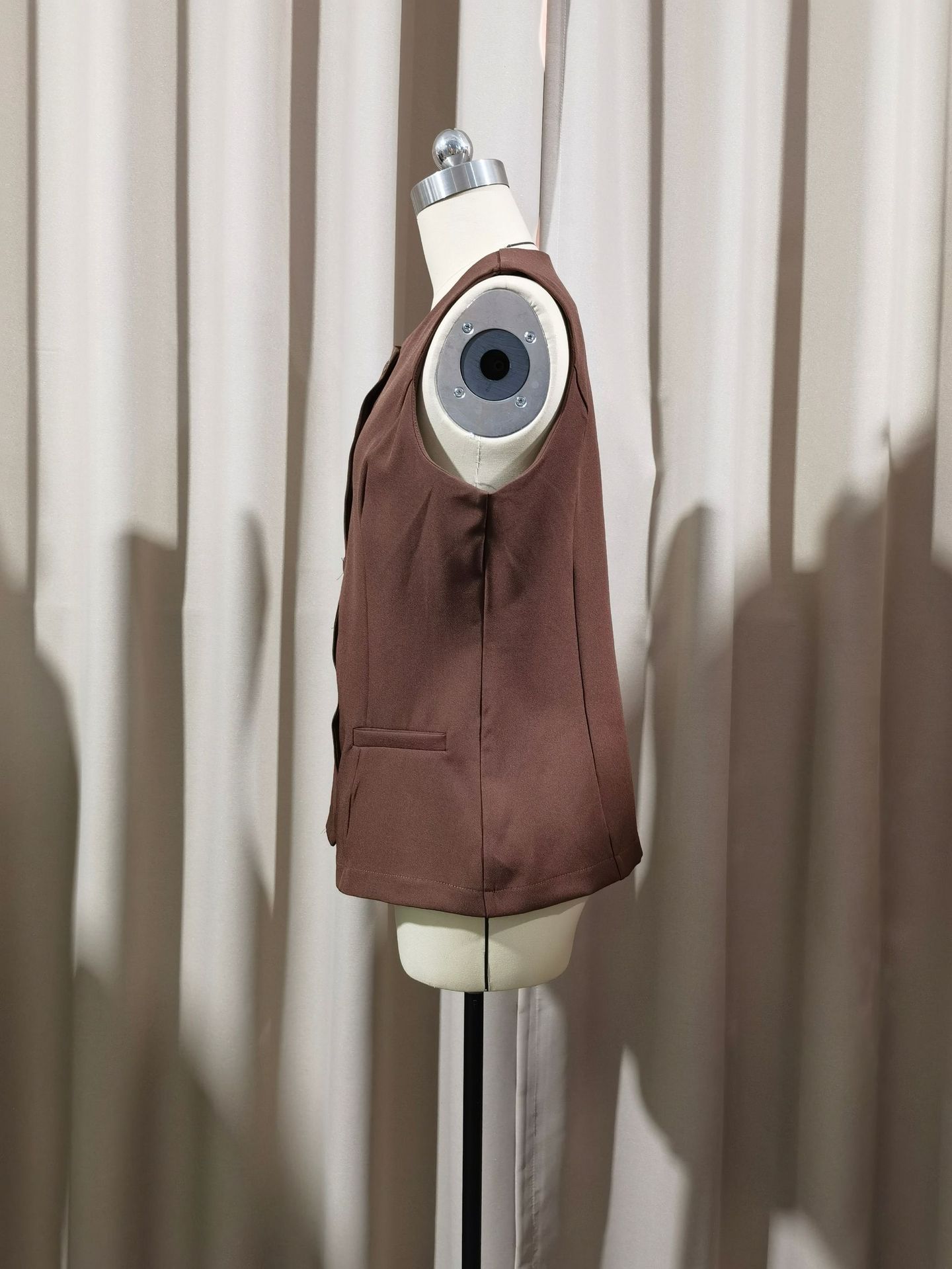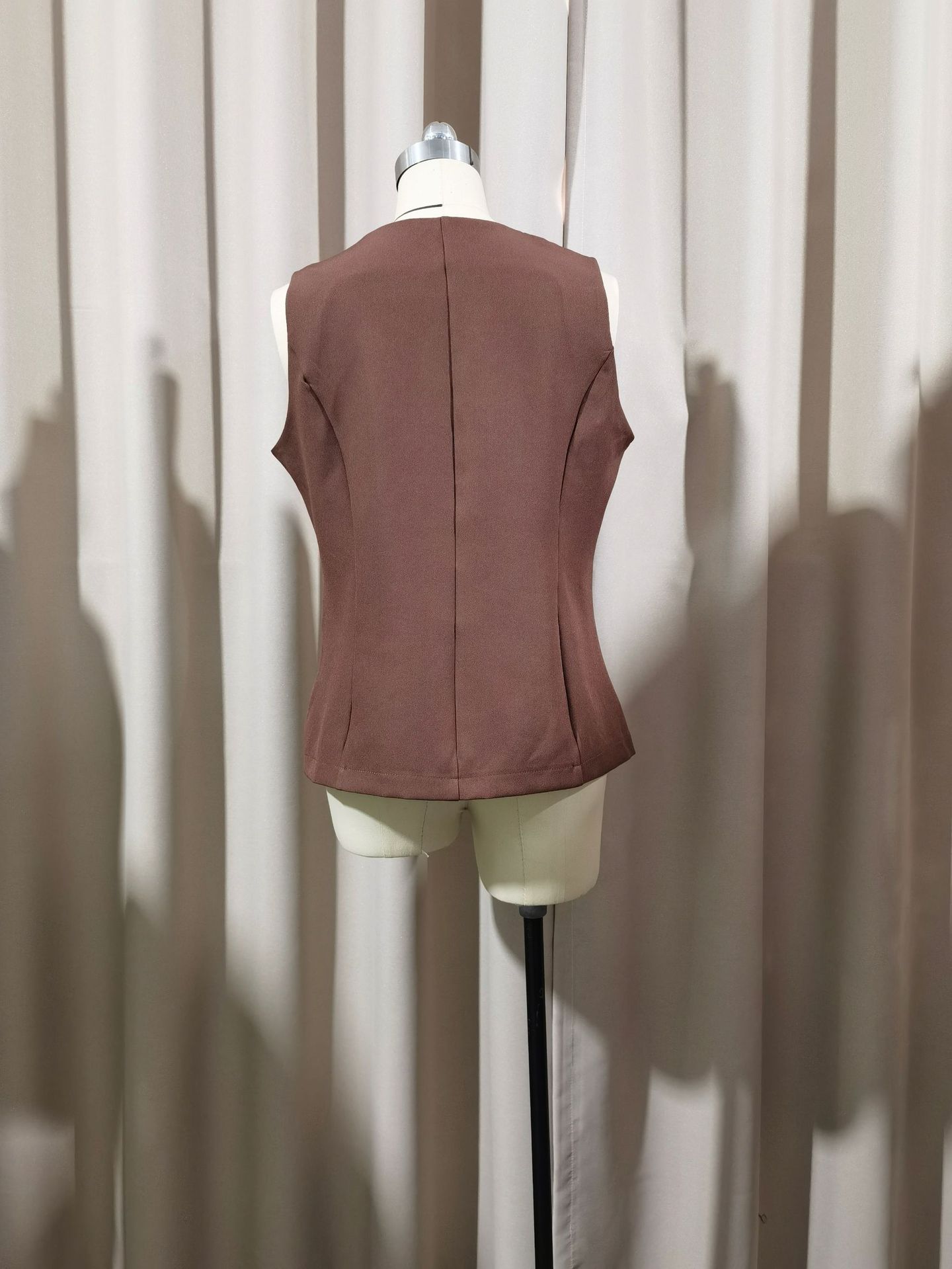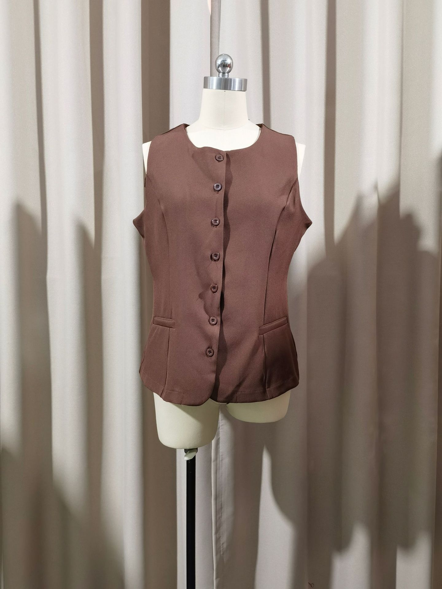여름 유럽과 미국 여성의 국경 새로운 통근 간단한 패션 버튼 단색 조끼 캐주얼 탑 라운드 넥 조끼