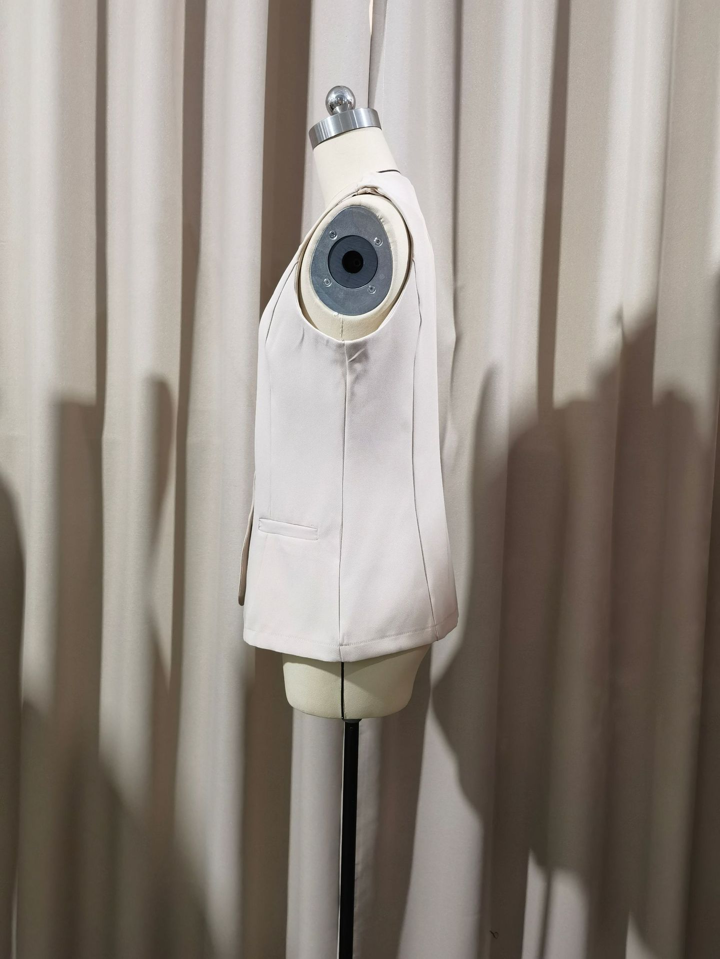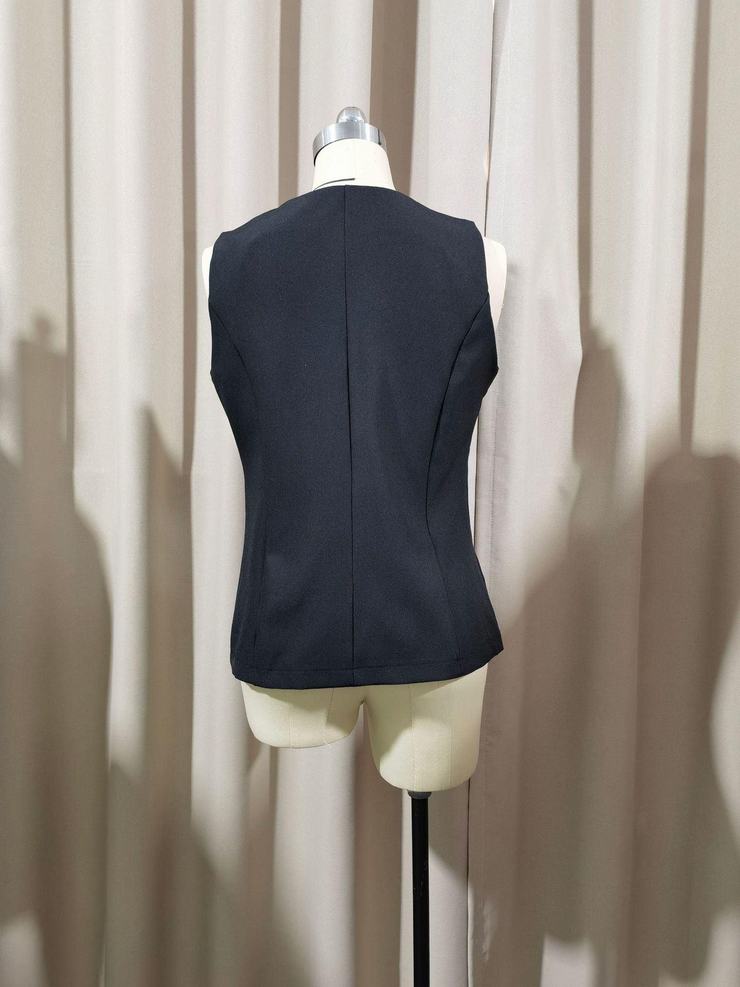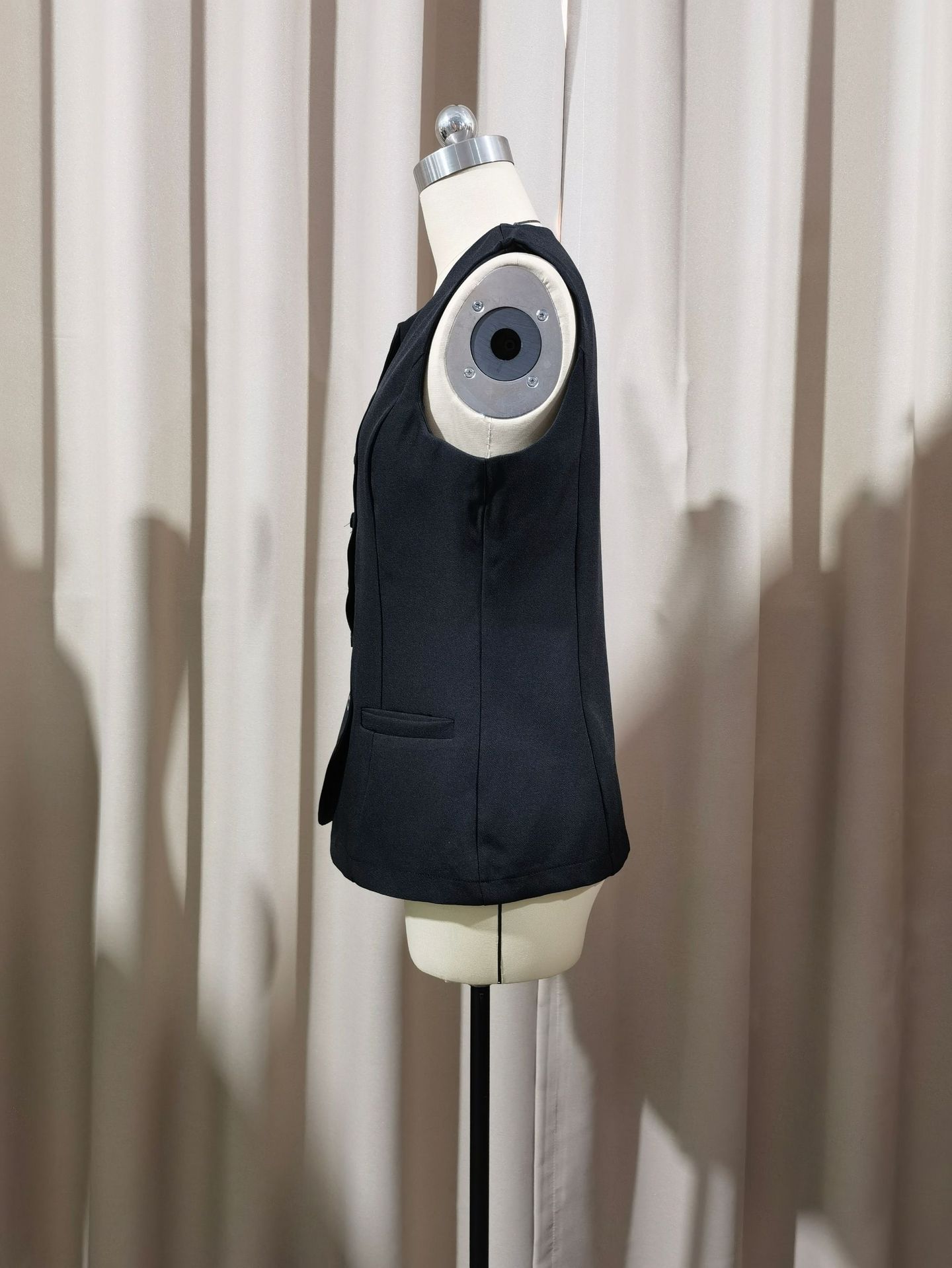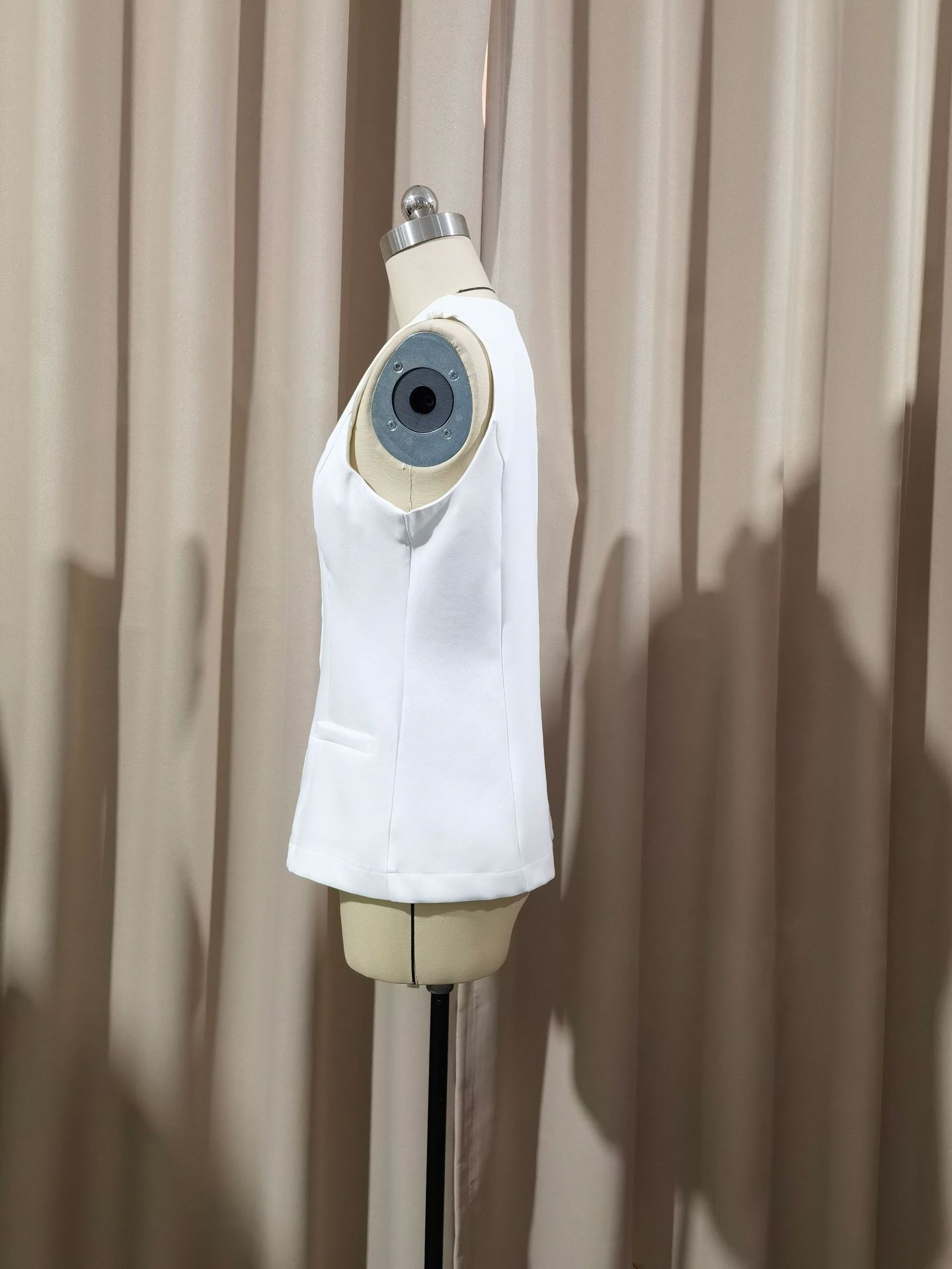 여름 유럽과 미국 여성의 국경 새로운 통근 간단한 패션 버튼 단색 조끼 캐주얼 탑 라운드 넥 조끼스토어 가기