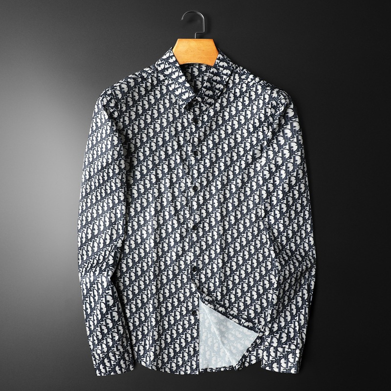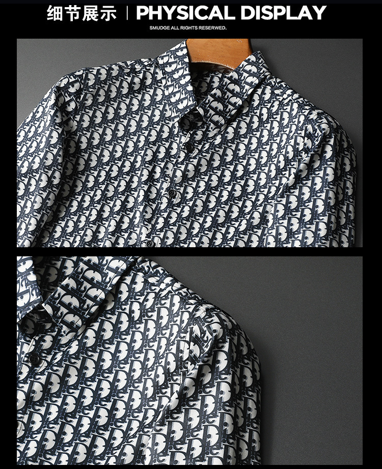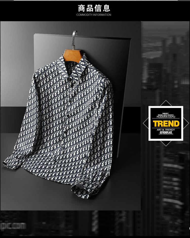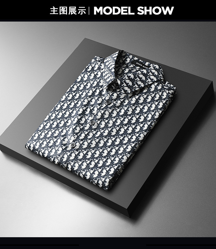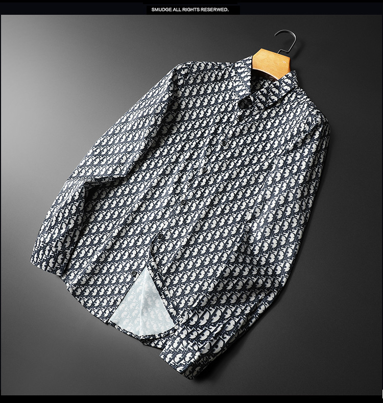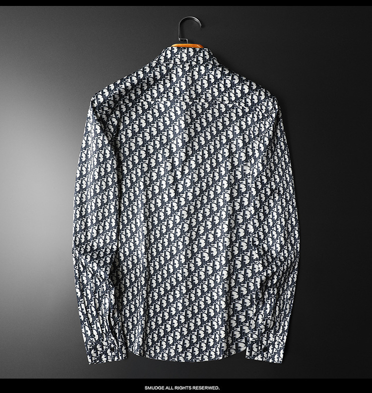 유럽 패션 비즈니스 캐주얼 셔츠 남성 봄 프린트 한국 스타일 슬림 트렌디 자수 긴팔 라펠 셔츠스토어 가기