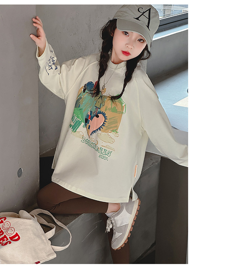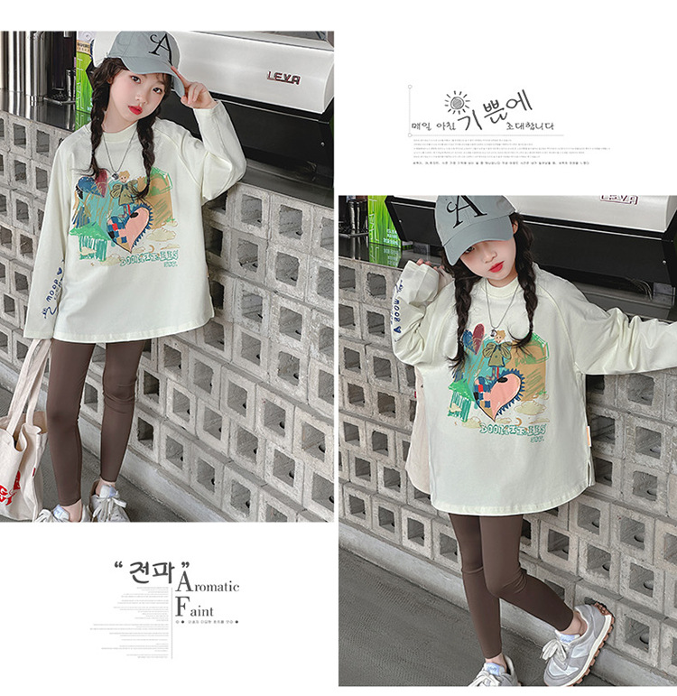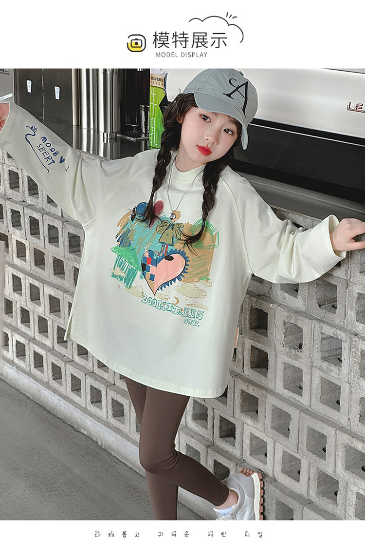 소녀 긴팔 티셔츠 면 2025 새로운 스타일 어린이 봄과 가을 스타일 큰 어린이 캐주얼 트렌디베이스 셔츠 탑스토어 가기