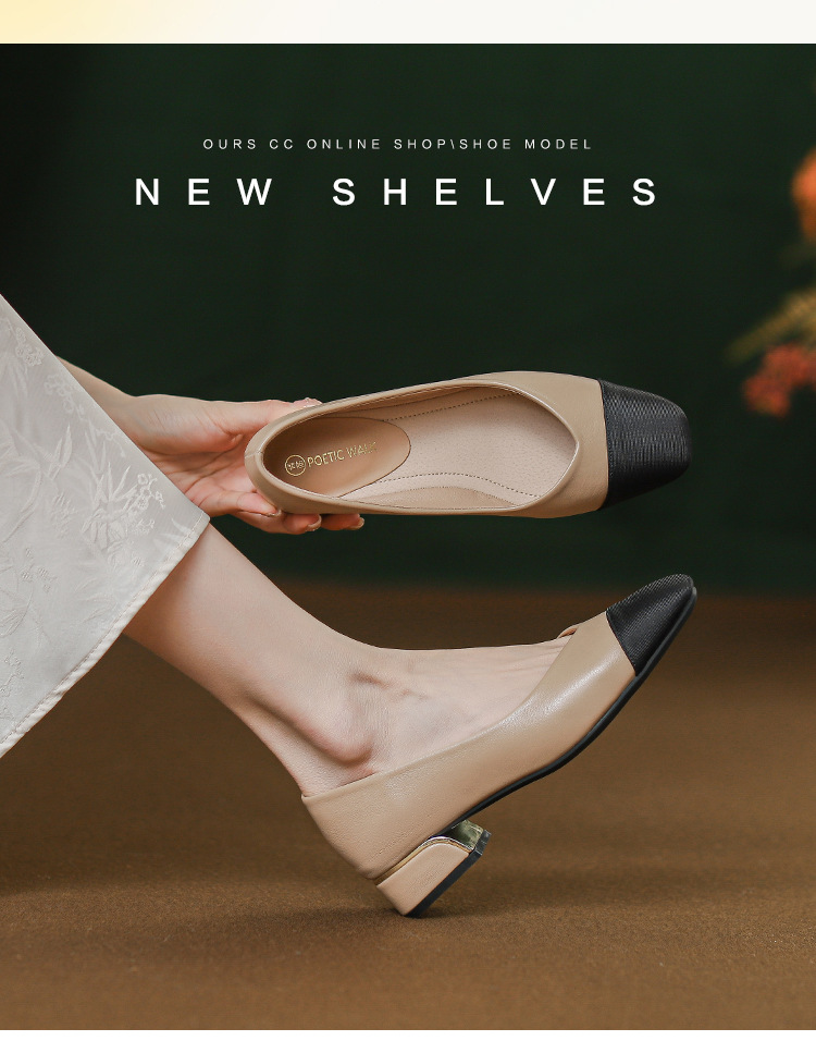 【40~45 사이즈】빅사이즈 여성화 41~43 여름 샤오샹 스타일 배색 두꺼운 굽 단화 44 사이즈 스커트와 함께 입는 가죽 신발스토어 가기