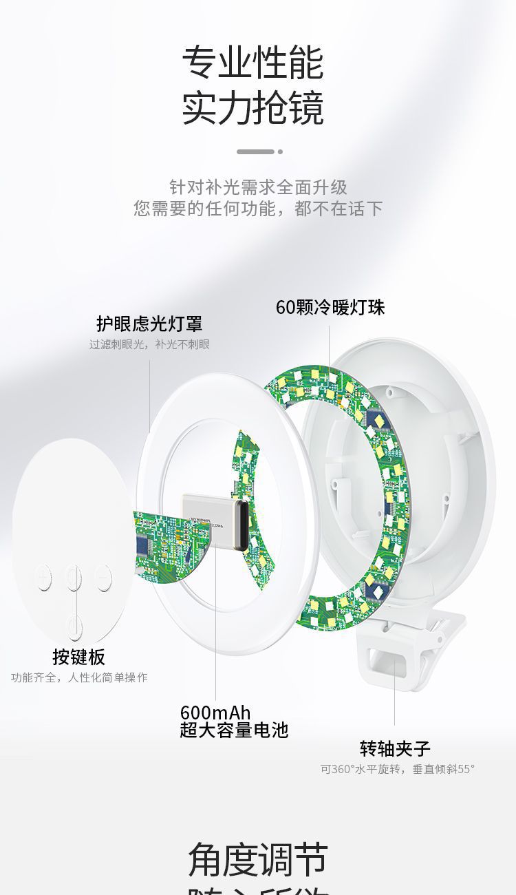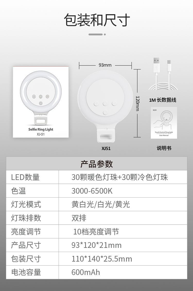 XJ51 휴대 전화 필 라이트 화상 회의 사진 조명 LED 라이브 링 라이트 앵커 컴퓨터 뷰티 셀카 라이트