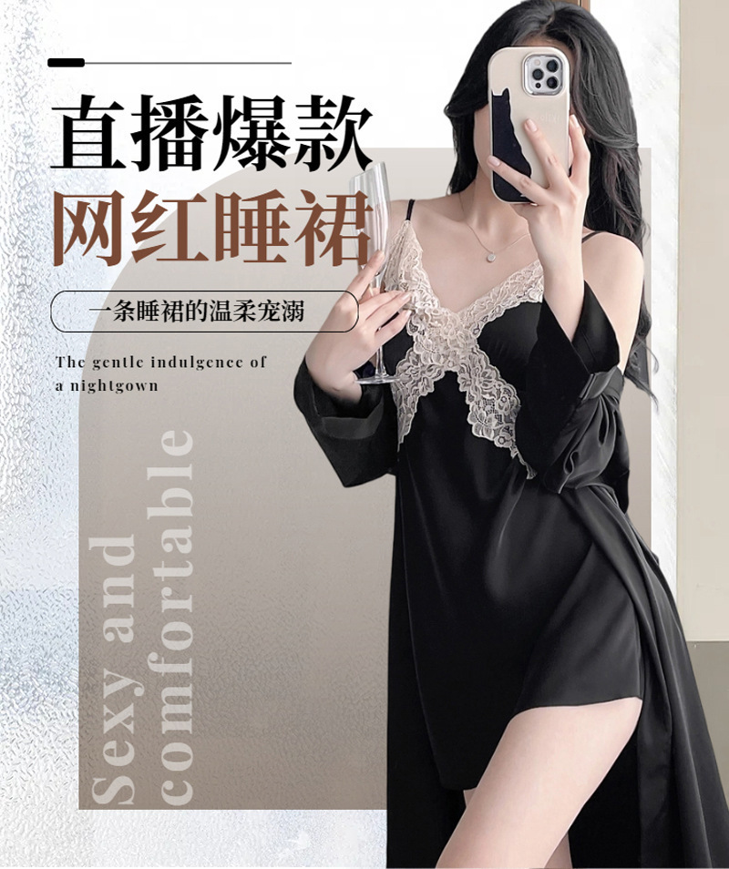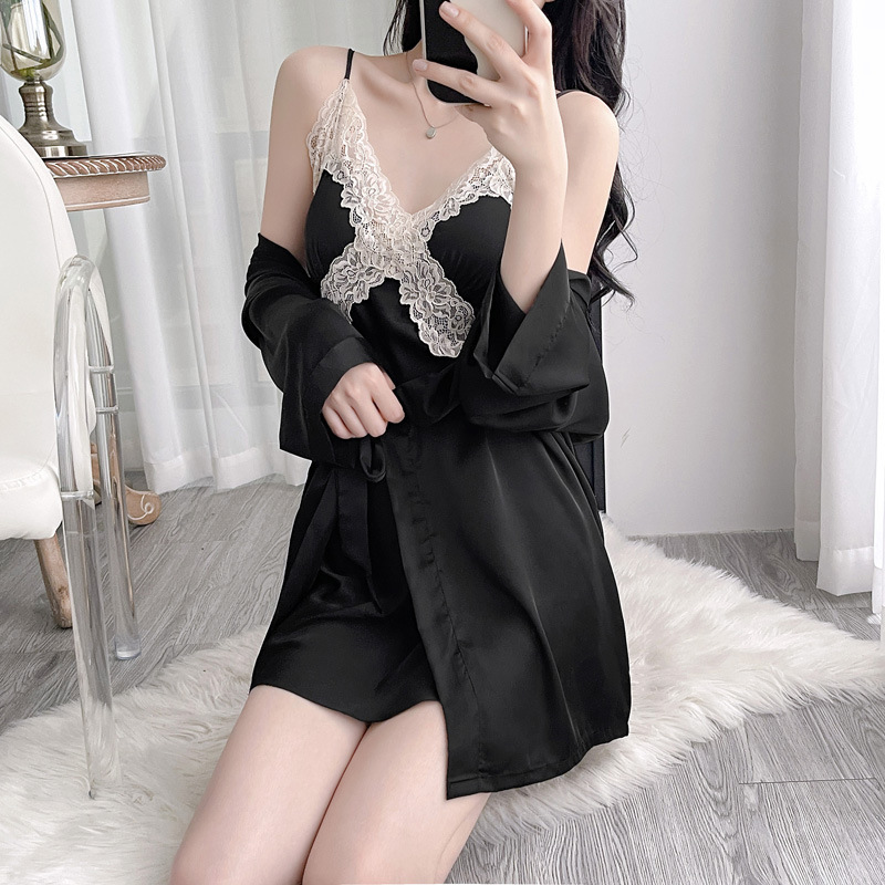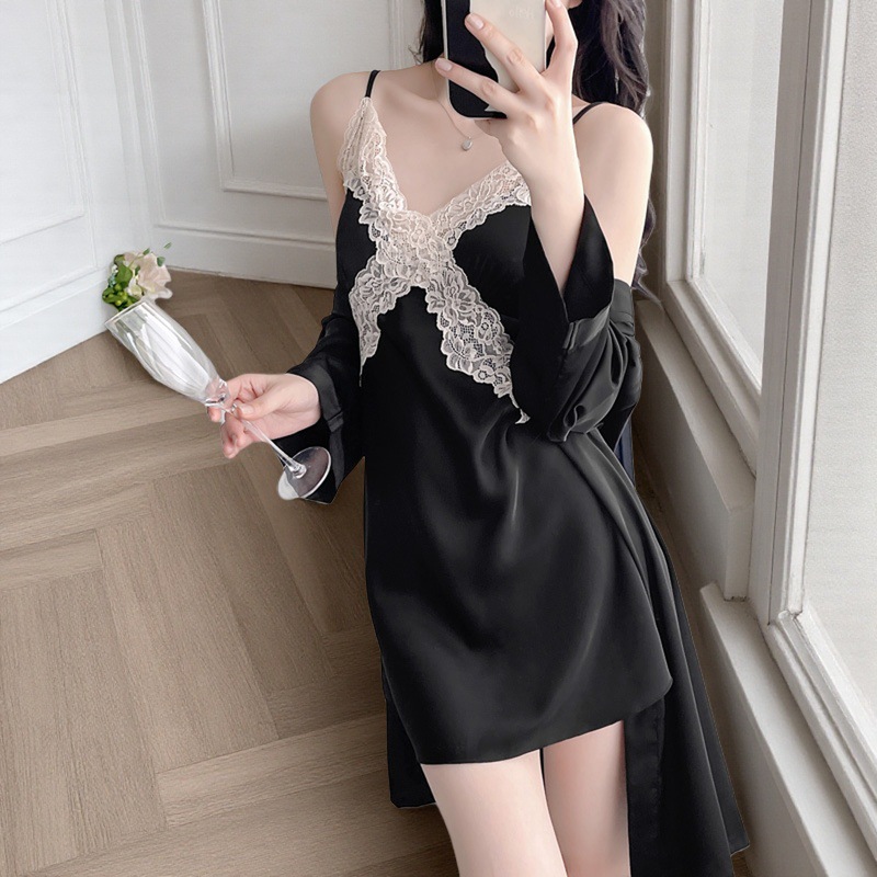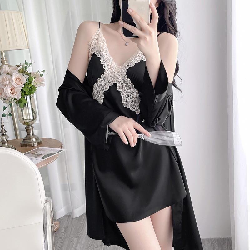• 새틴 아이스 실크 잠옷 - 고급 블랙