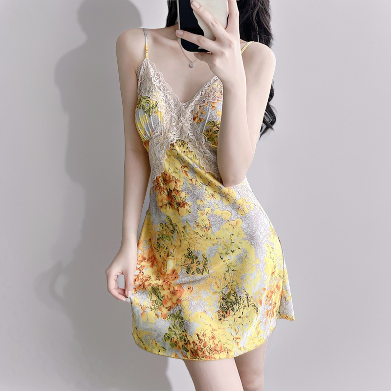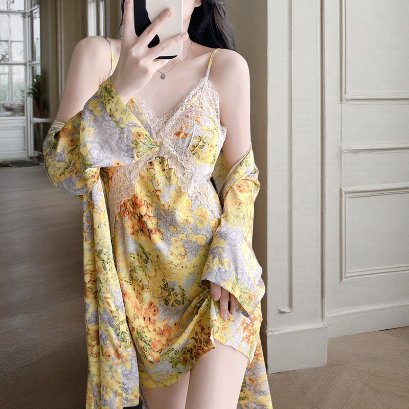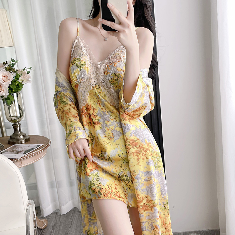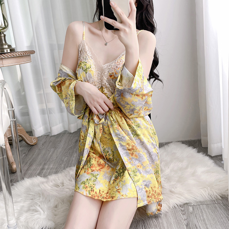 • 새틴 아이스 실크 잠옷 - 골든 옐로우