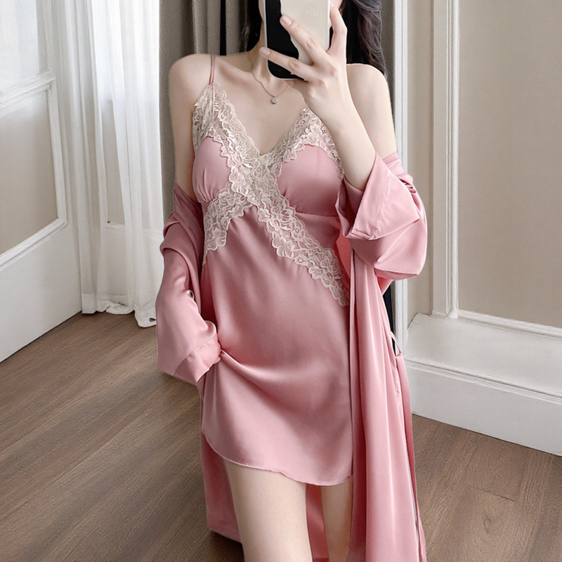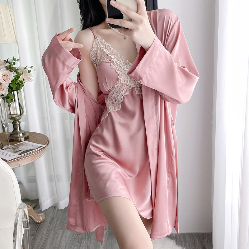 • 새틴 아이스 실크 잠옷 - 사쿠라 핑크