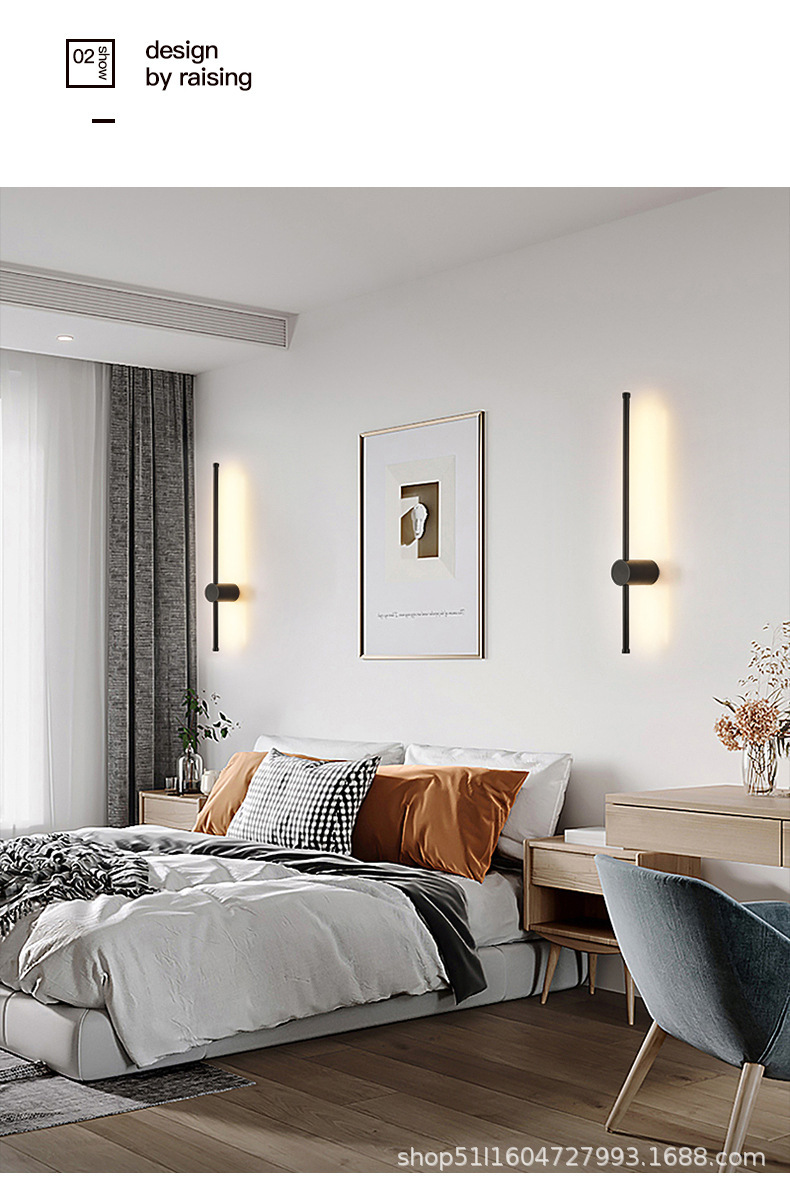 MOFAS 간단한 현대 침실 머리맡 LED 스트립 거실 TV 배경 벽 통로 미니멀리스트 라인 벽 램프