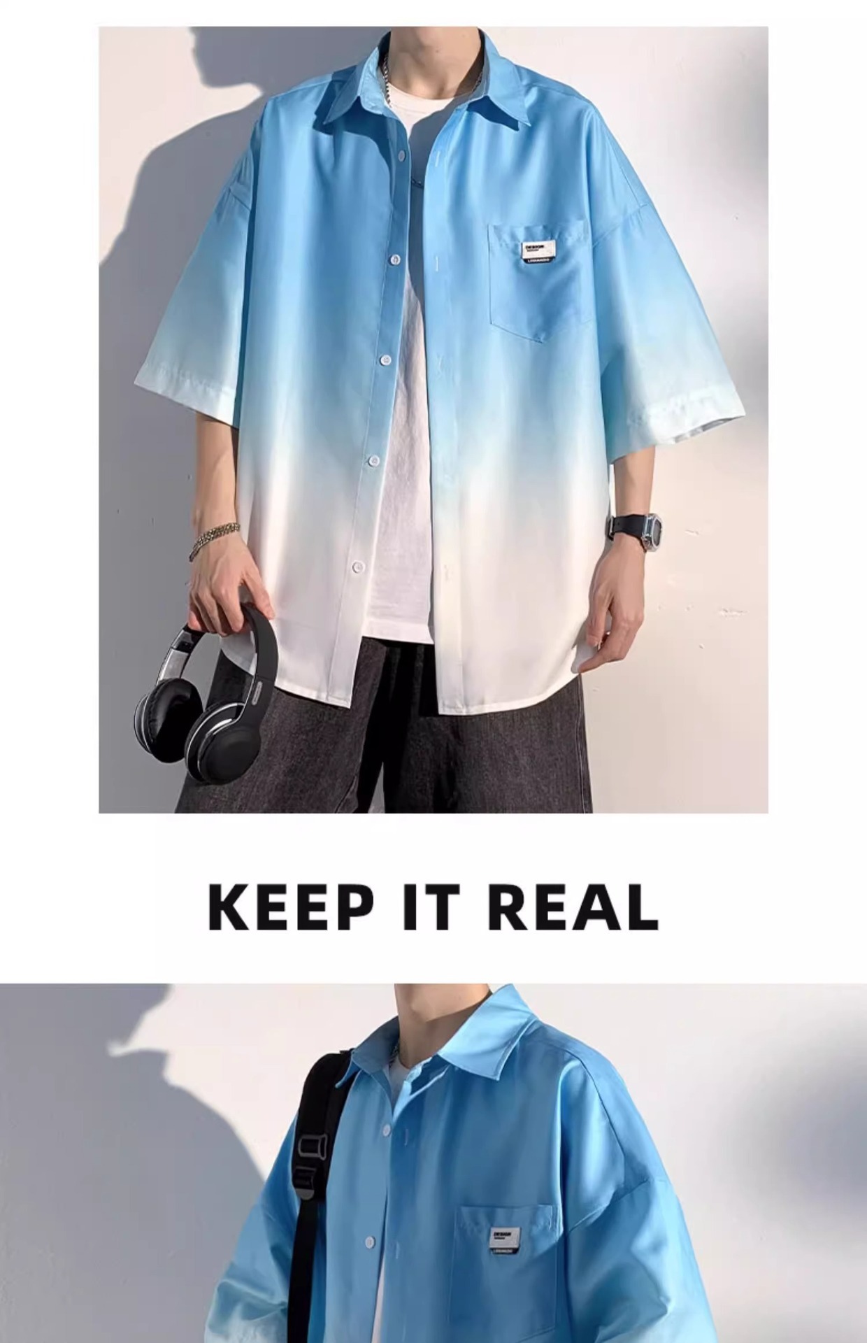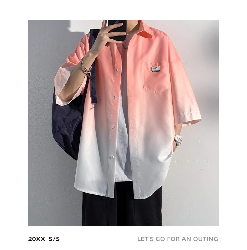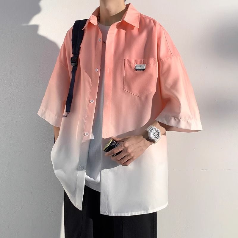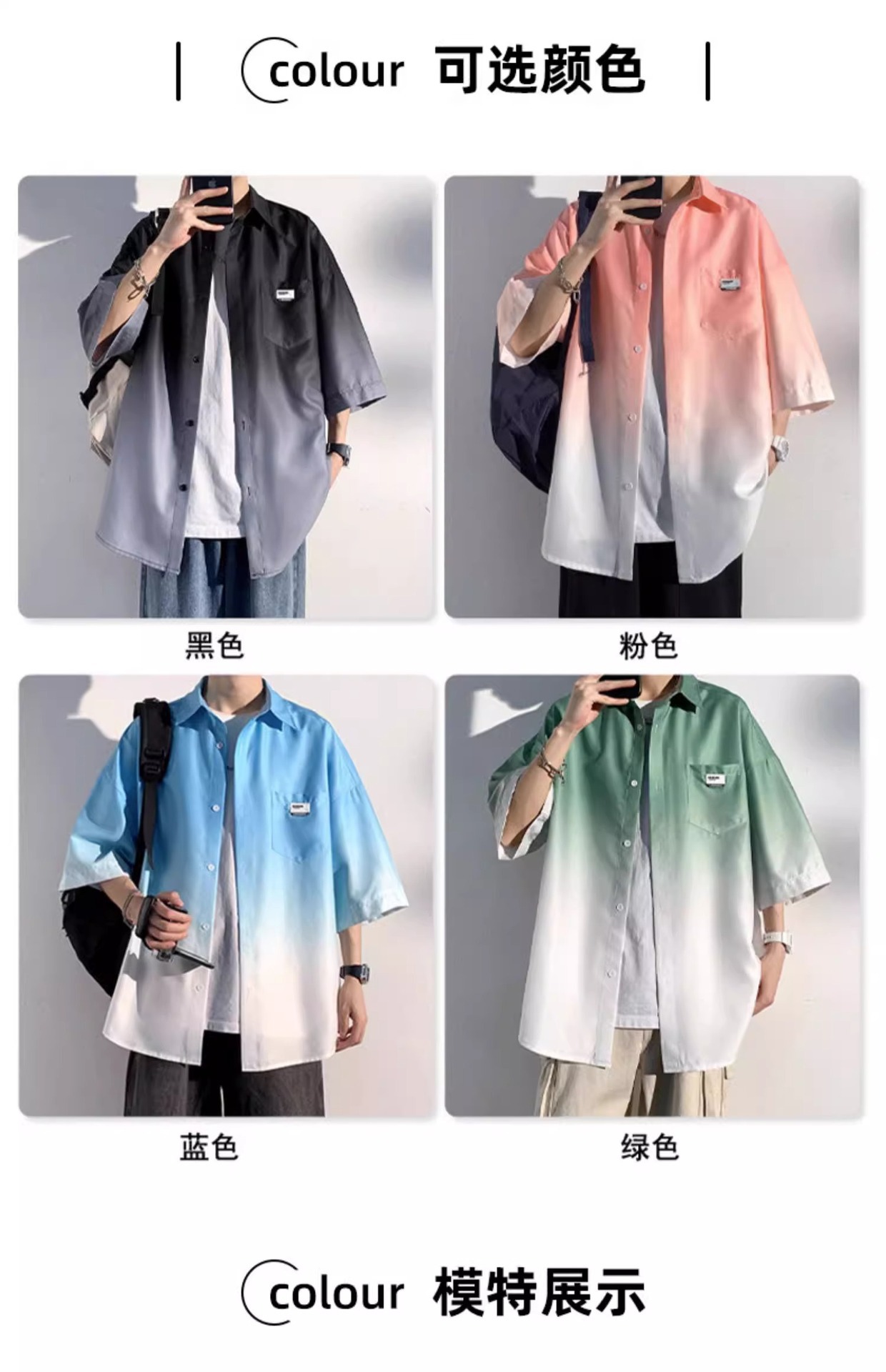 아이스 실크 그라디언트 반팔 셔츠 남자 2025 여름 새로운 느슨한 캐주얼 남성 트렌디 남성용 셔츠 재킷스토어 가기