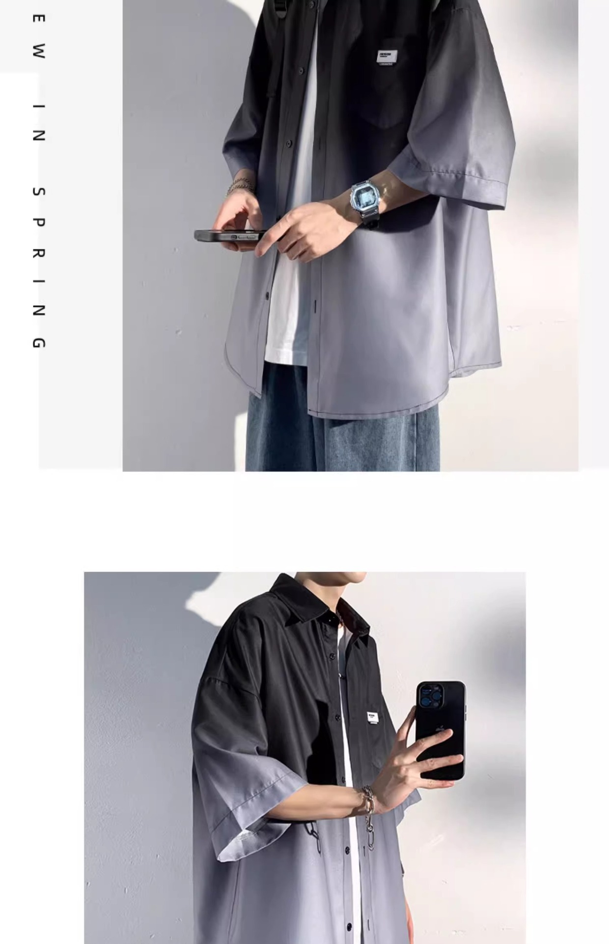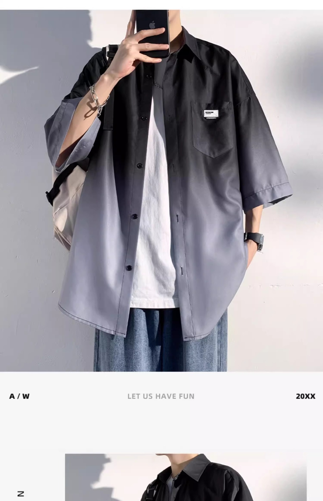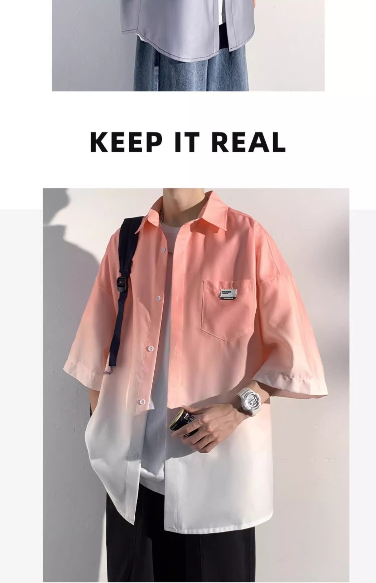 아이스 실크 그라디언트 반팔 셔츠 남자 2025 여름 새로운 느슨한 캐주얼 남성 트렌디 남성용 셔츠 재킷스토어 가기