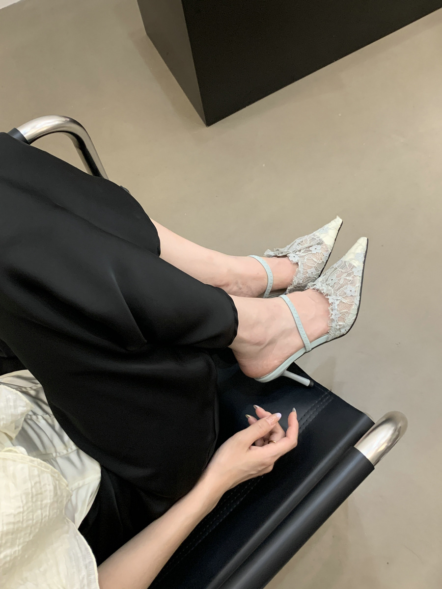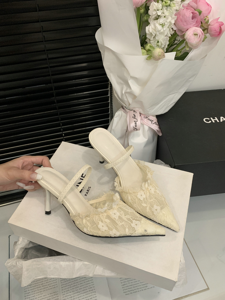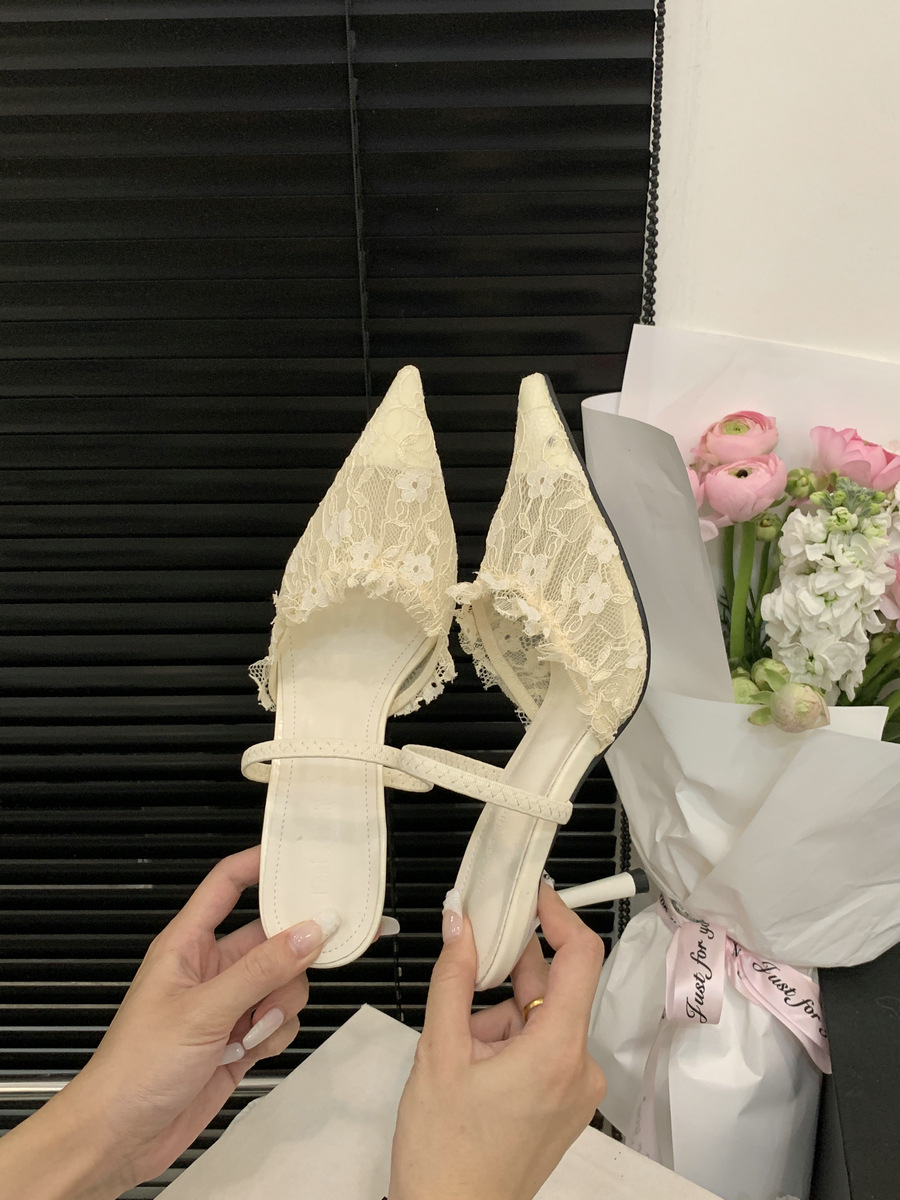 여성용 사선코 슬리퍼, 뾰족코 스틸레토 하이힐, 달콤한 기질, 여성용 레이스 중공코 샌들