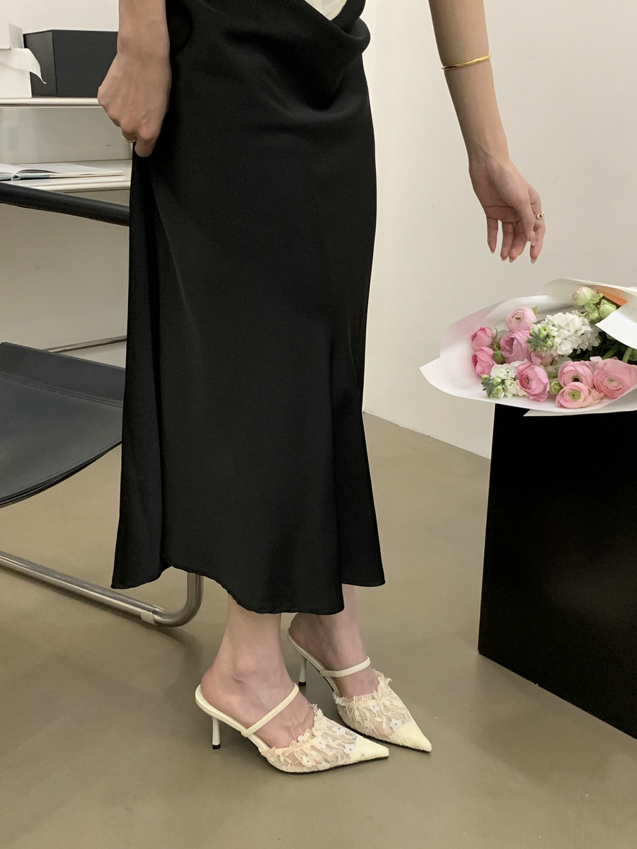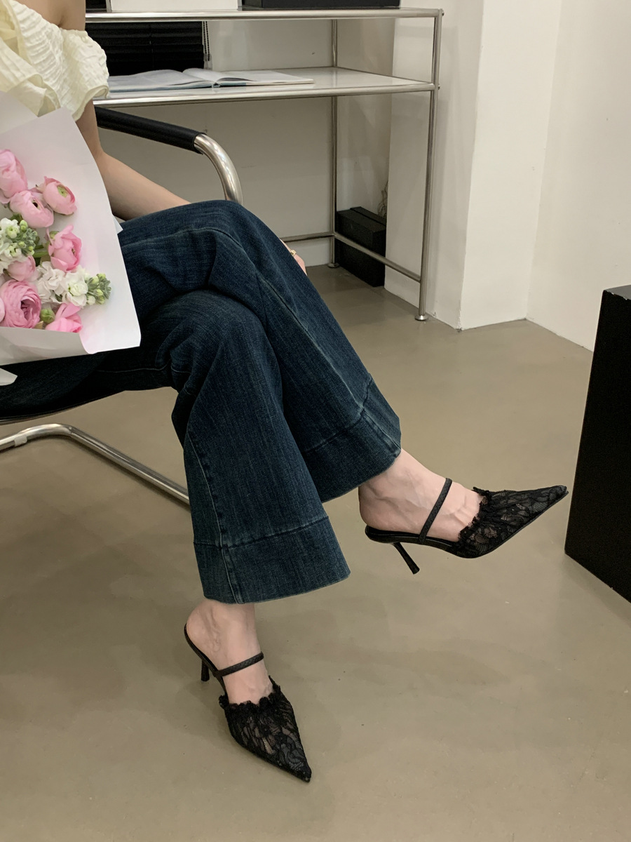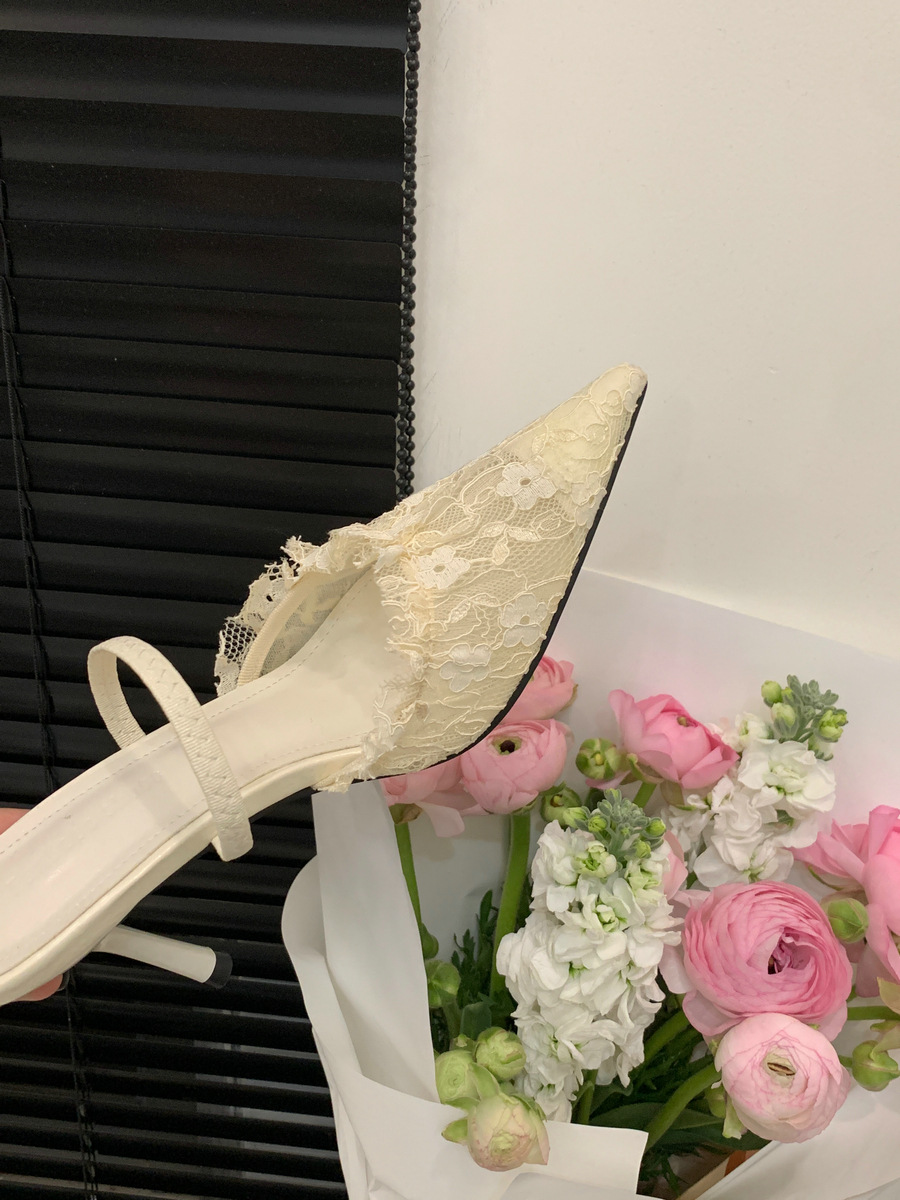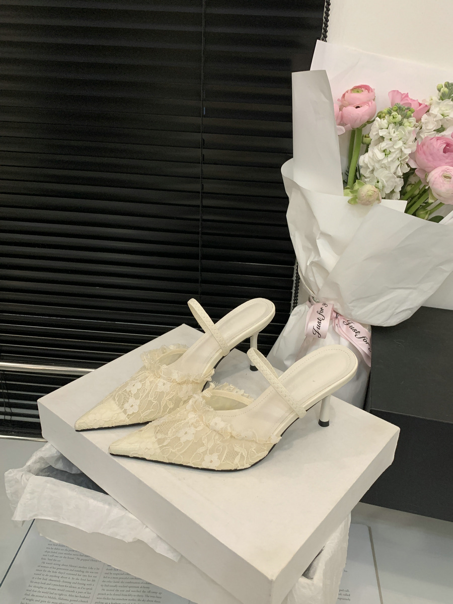 여성용 사선코 슬리퍼, 뾰족코 스틸레토 하이힐, 달콤한 기질, 여성용 레이스 중공코 샌들