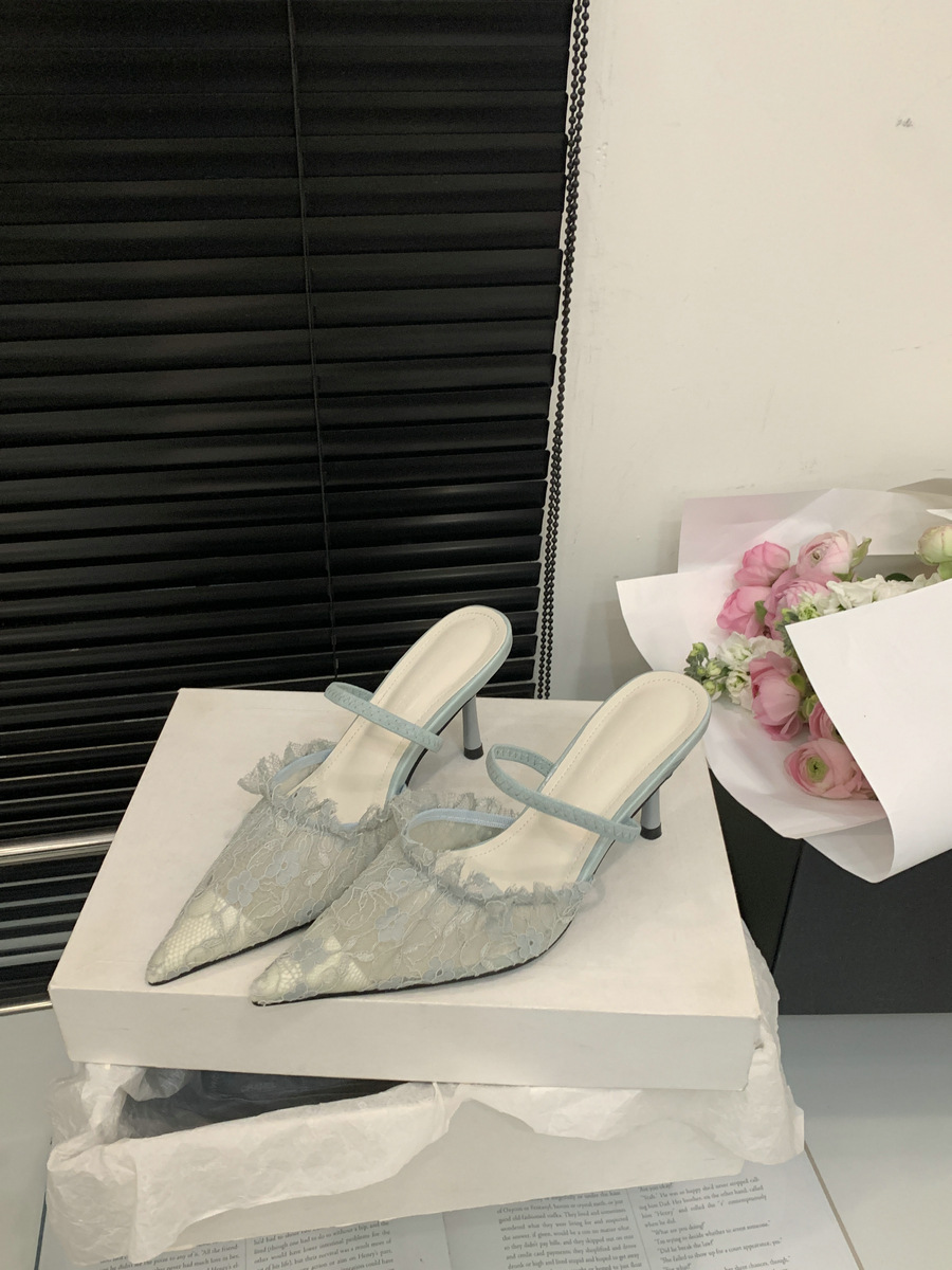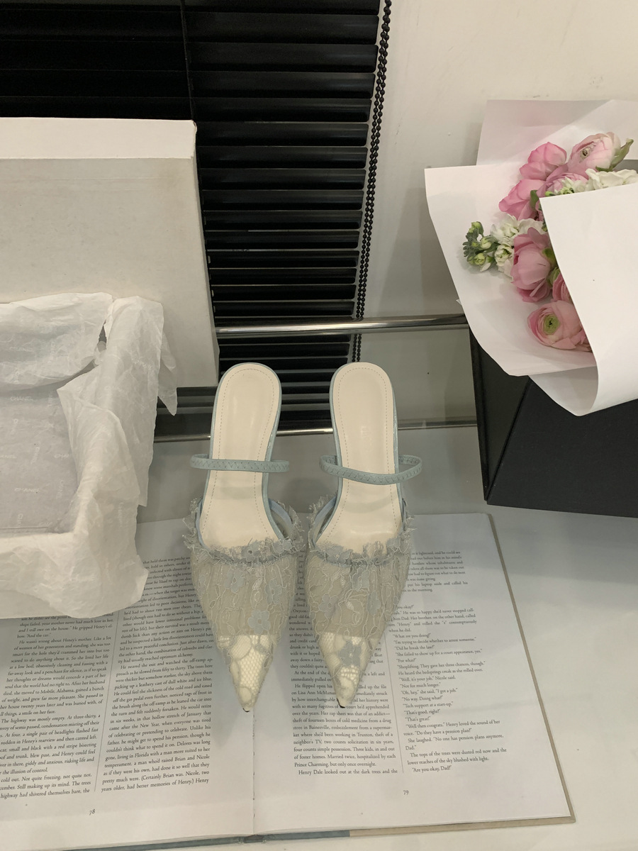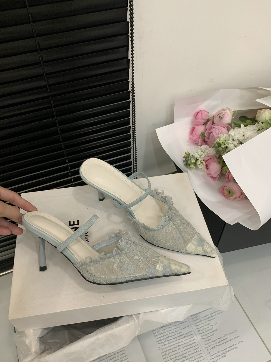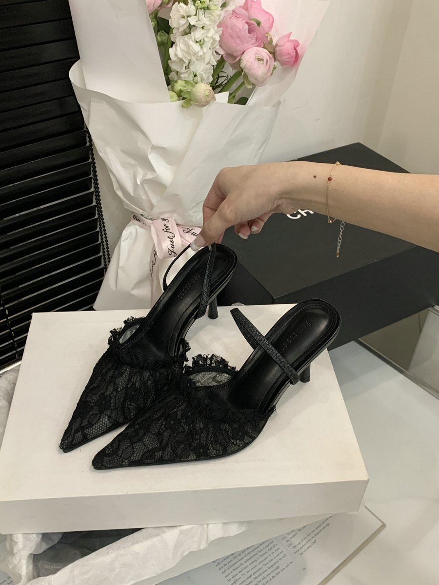 여성용 사선코 슬리퍼, 뾰족코 스틸레토 하이힐, 달콤한 기질, 여성용 레이스 중공코 샌들스토어 가기