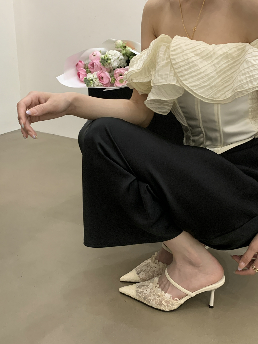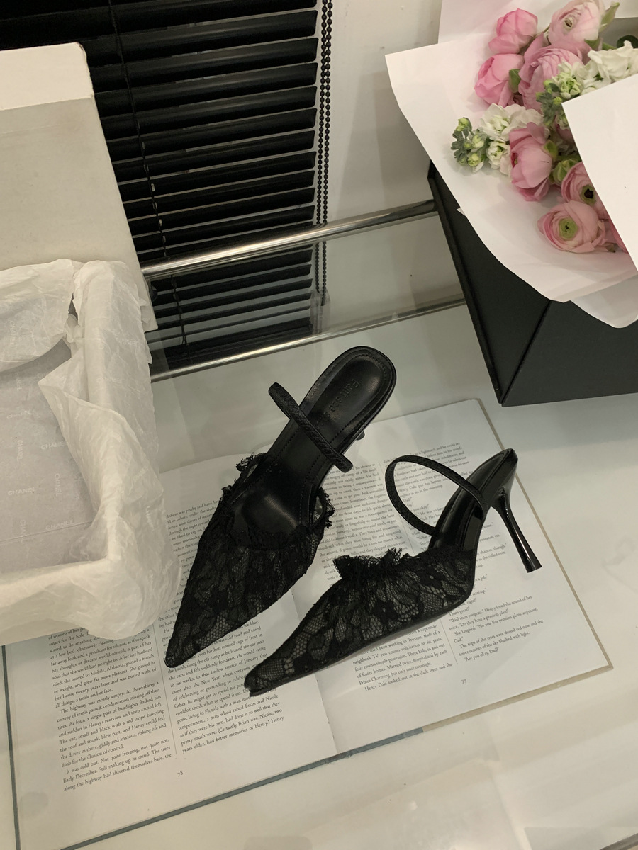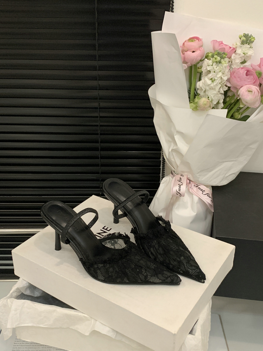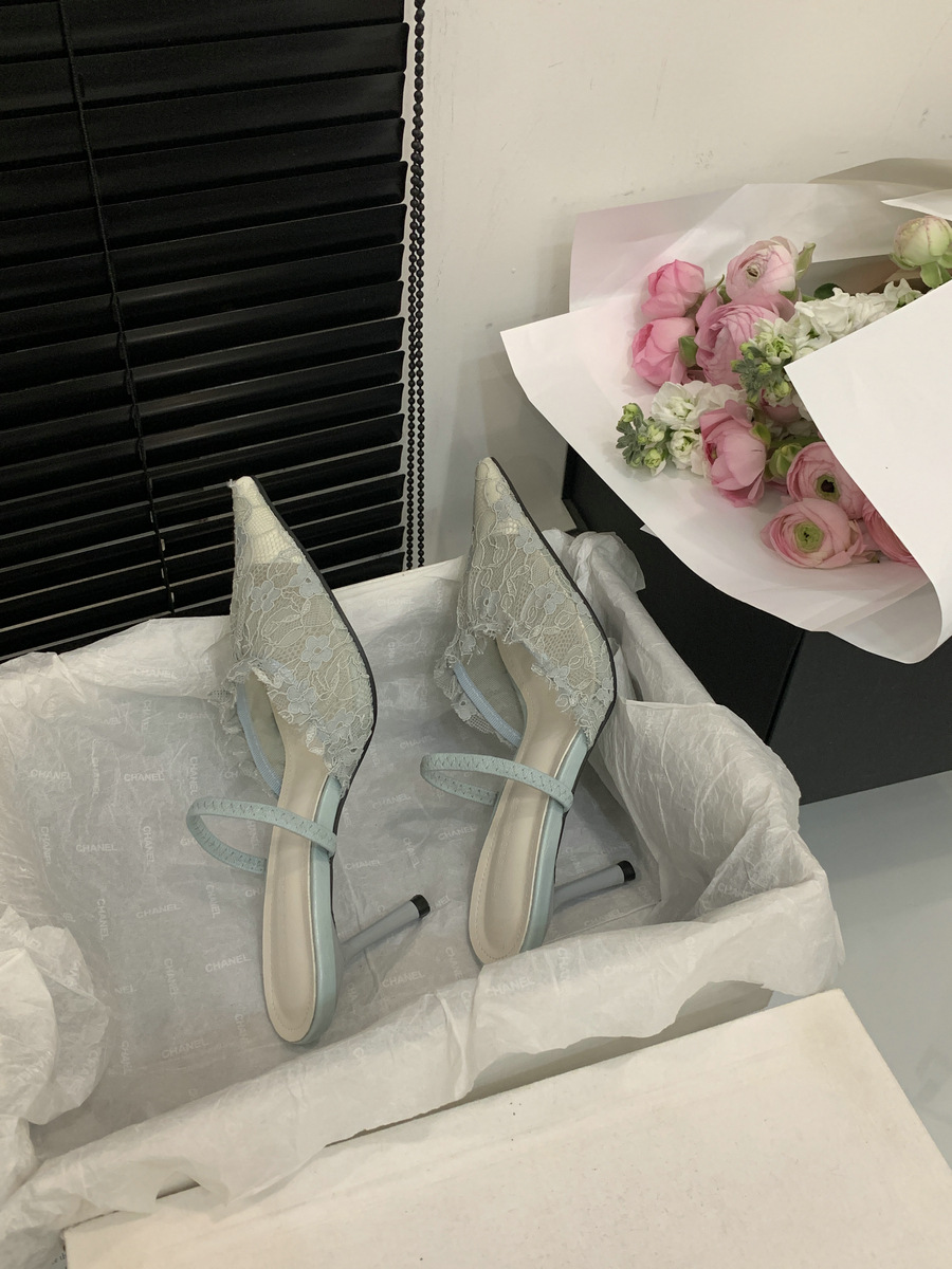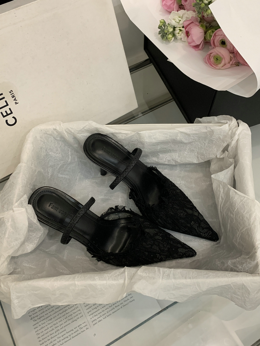 여성용 사선코 슬리퍼, 뾰족코 스틸레토 하이힐, 달콤한 기질, 여성용 레이스 중공코 샌들스토어 가기