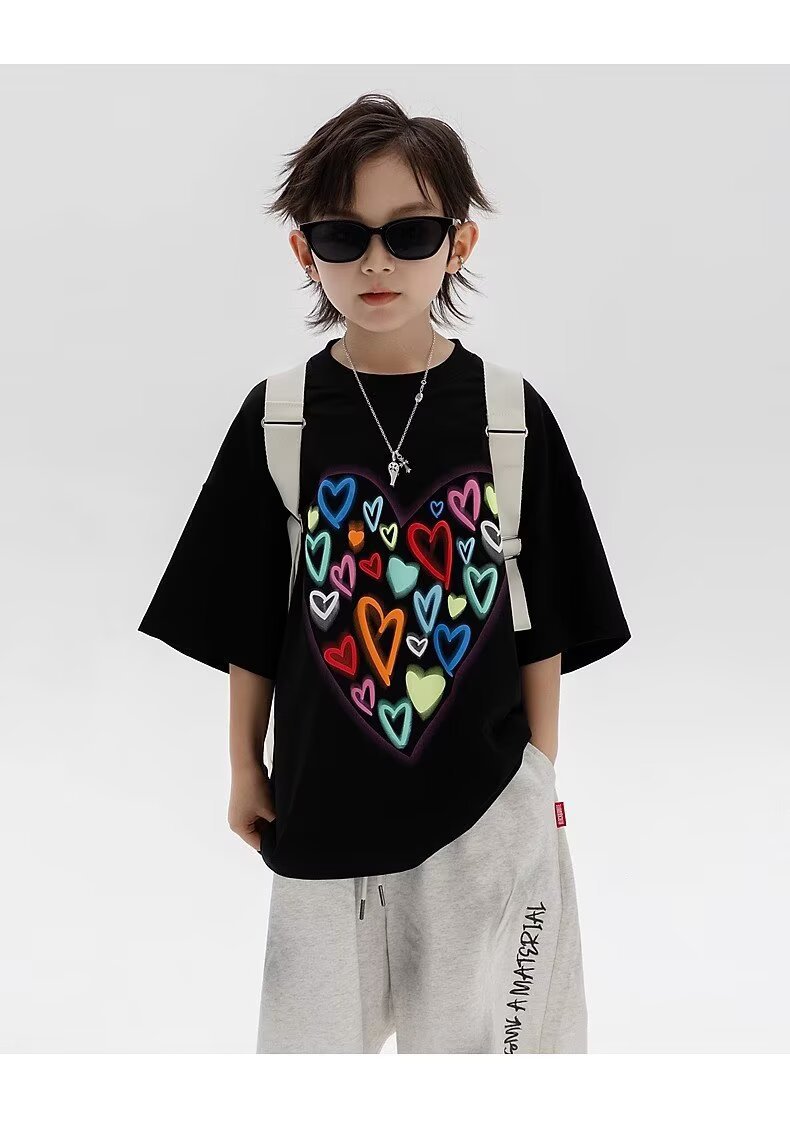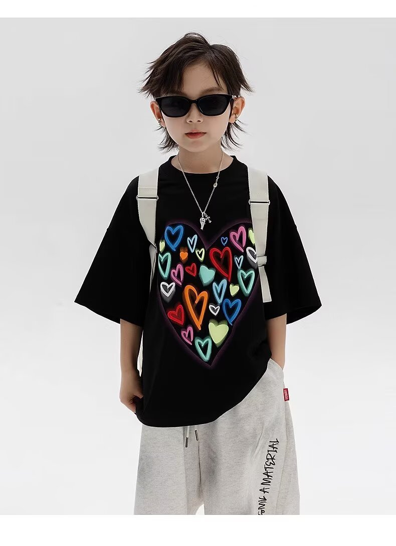 소년 여름 순면 반팔 티셔츠 스트리트 한국 스타일 여름 옷 2025 새로운 대형 아동복 여름 반팔 티셔츠스토어 가기