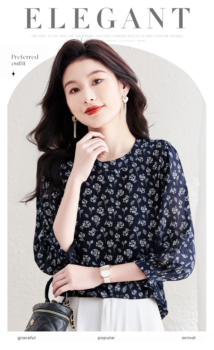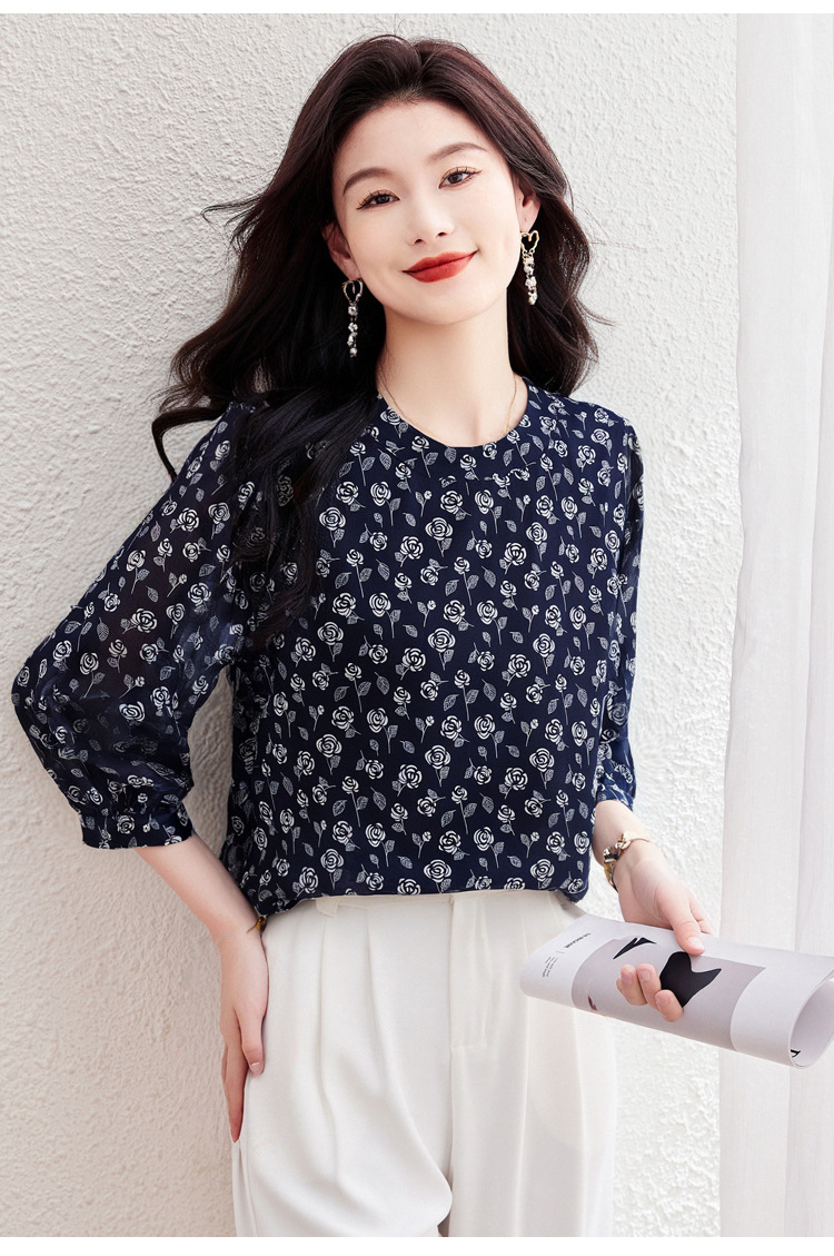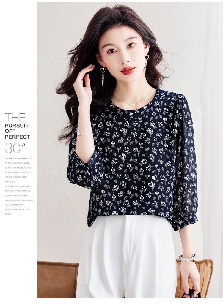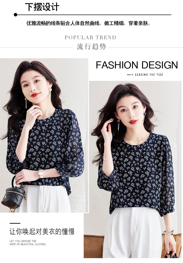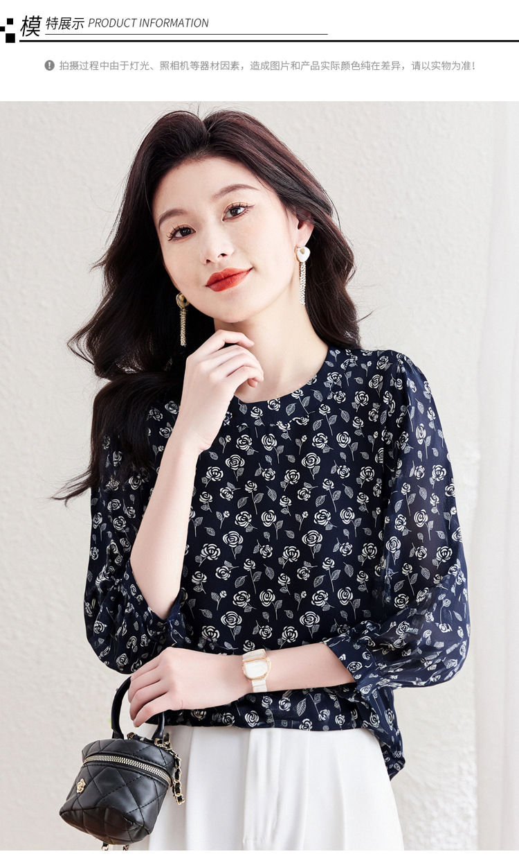 꽃 무늬 쉬폰 셔츠 2025 봄 새로운 패션 기질 중간 소매 셔츠 슈퍼 요정 스타일 탑 여성 도매스토어 가기