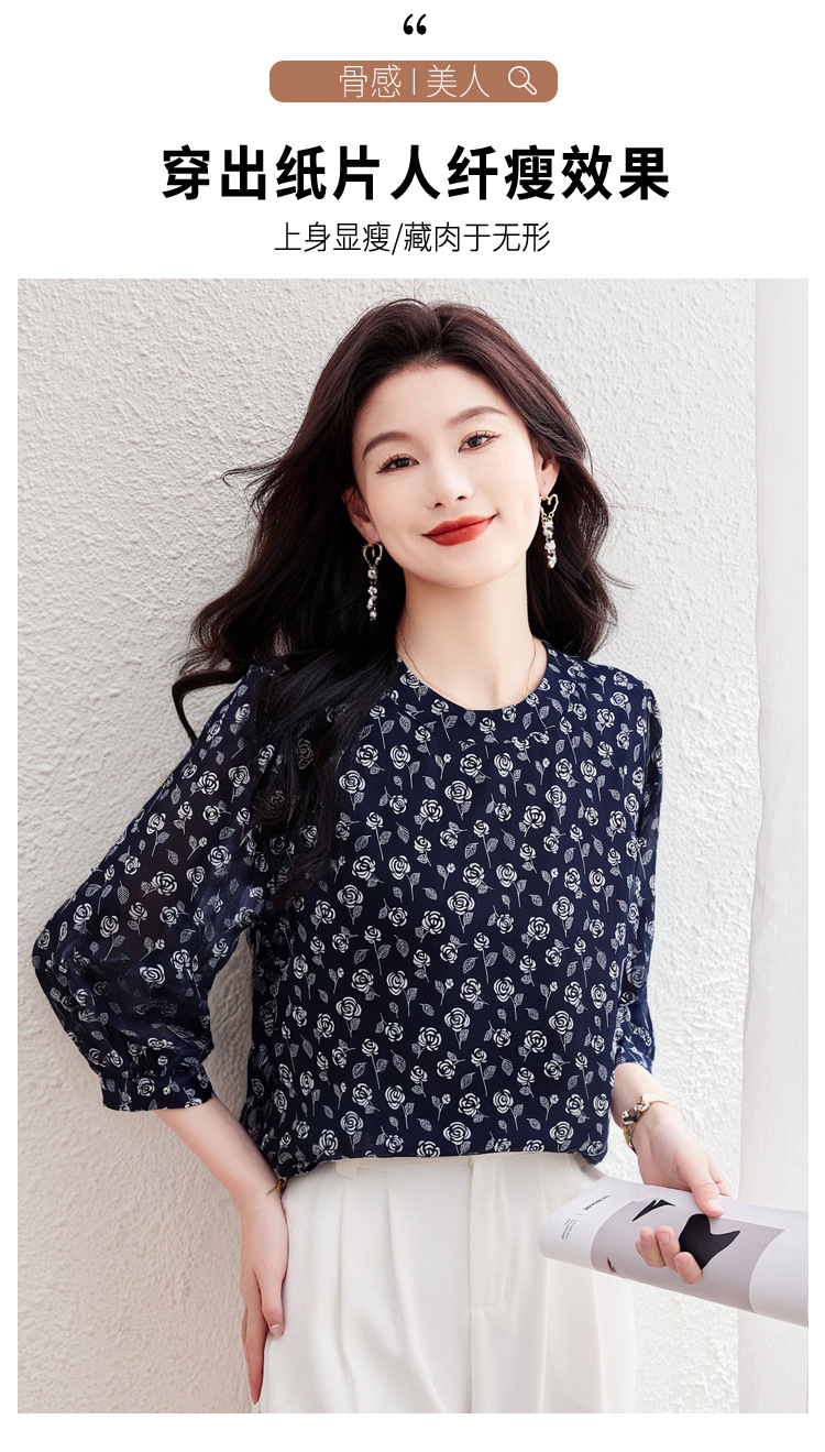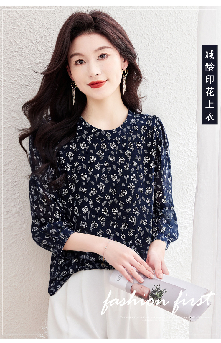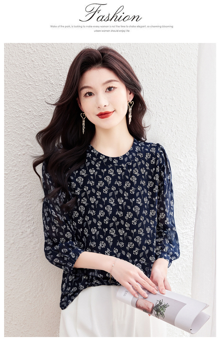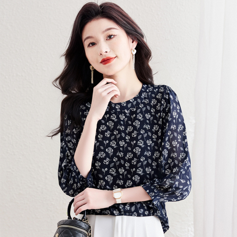 꽃 무늬 쉬폰 셔츠 2025 봄 새로운 패션 기질 중간 소매 셔츠 슈퍼 요정 스타일 탑 여성 도매스토어 가기