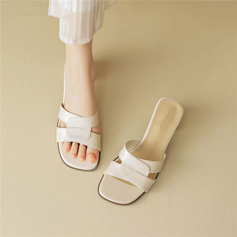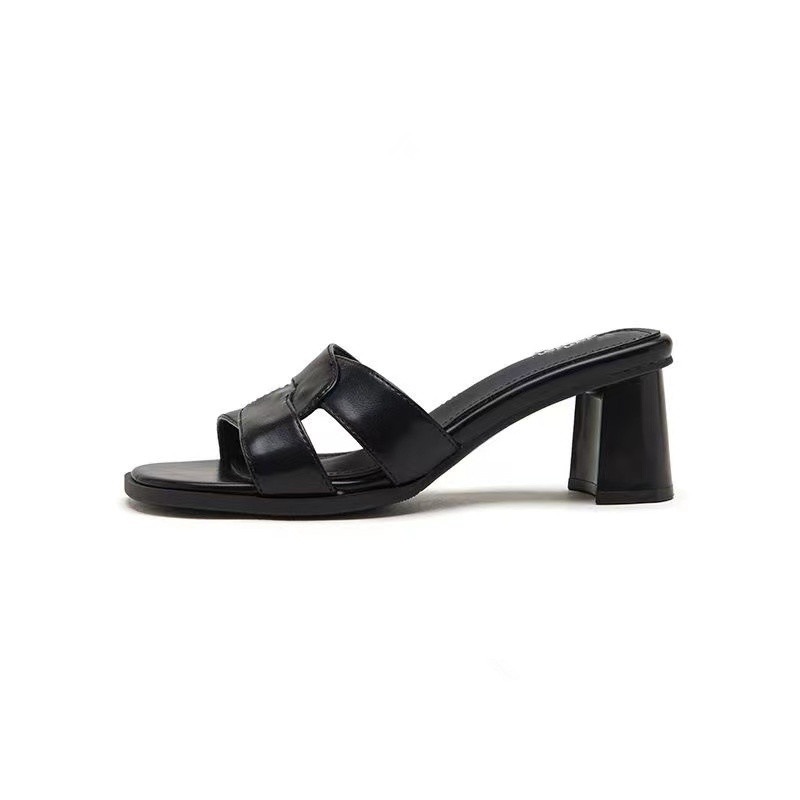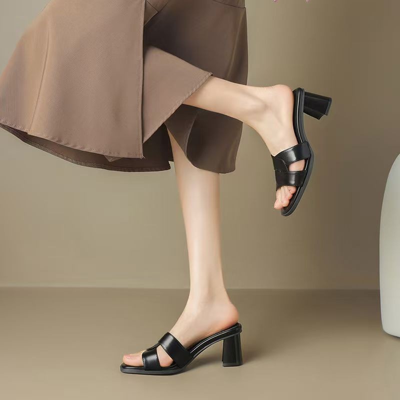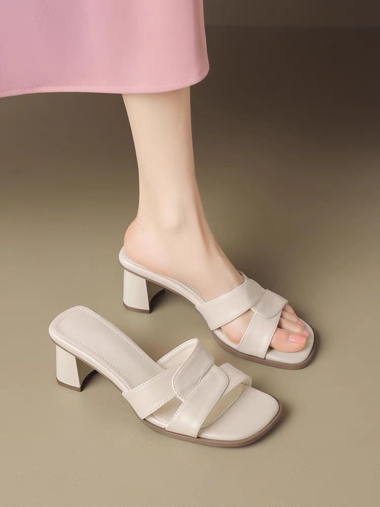 하이힐 슬리퍼 여성 여름 2025 새로운 하이 엔드 슬립 온 두꺼운 힐 슬리퍼 프랑스 스타일 원피스