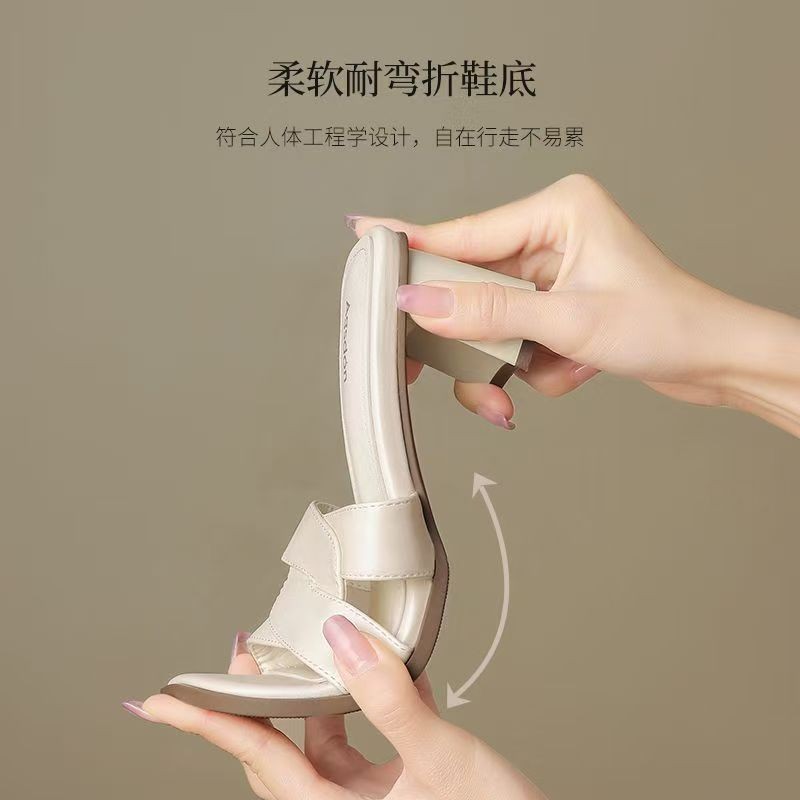 하이힐 슬리퍼 여성 여름 2025 새로운 하이 엔드 슬립 온 두꺼운 힐 슬리퍼 프랑스 스타일 원피스스토어 가기