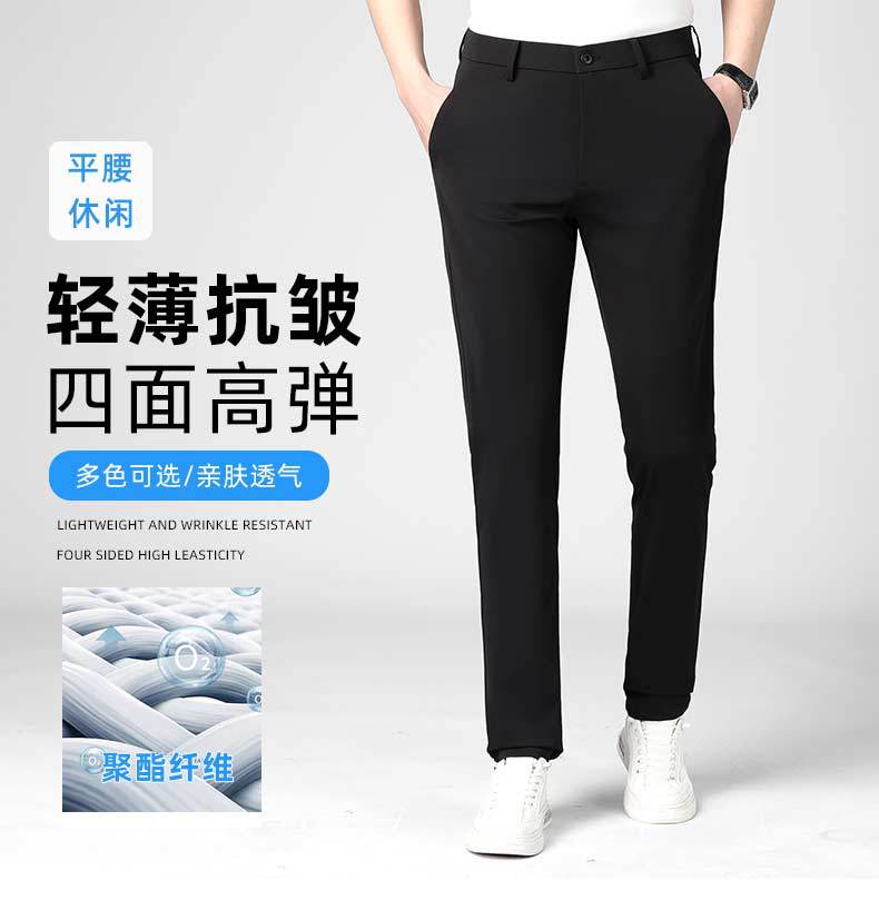 여름 얇은 4 면 스트레치 캐주얼 바지 높은 허리 깊은 크로 치 느슨한 긴 바지 플러스 대형 중년 남성 바지