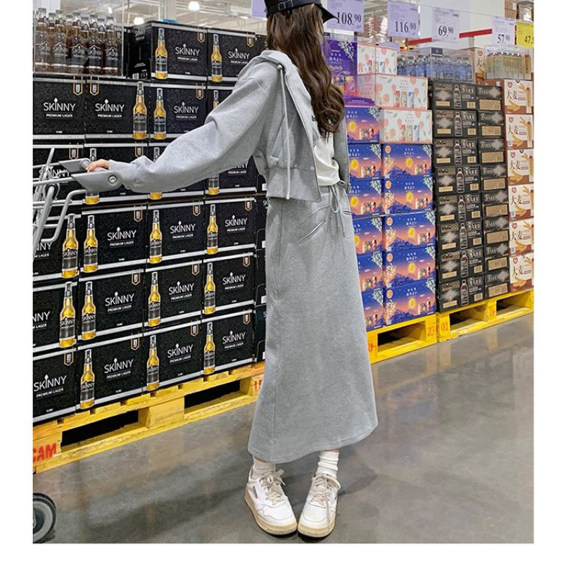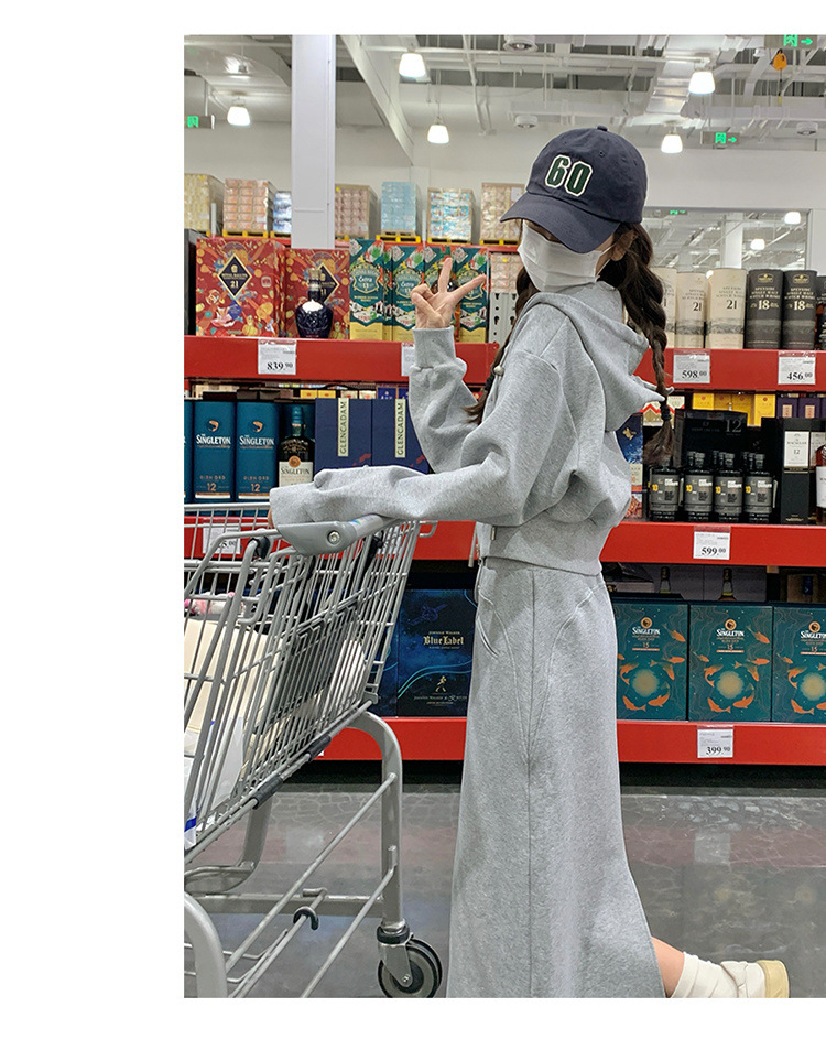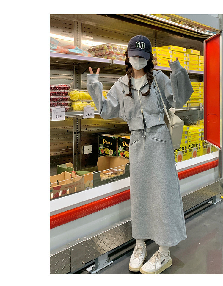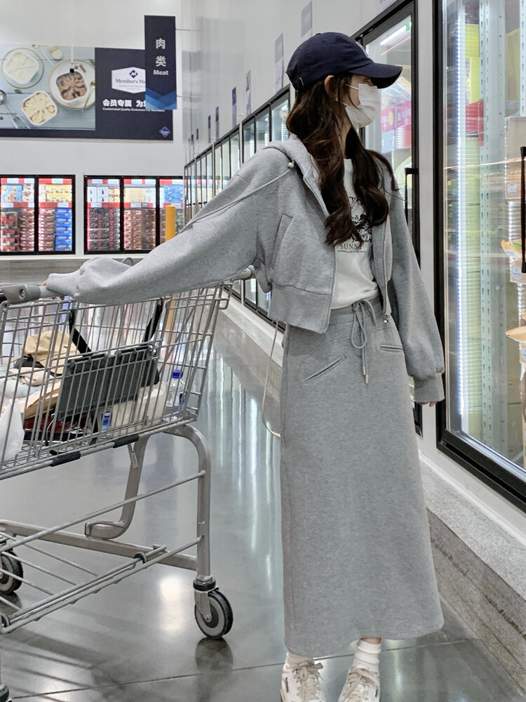 [10000 컬렉션] 회색 레저 스포츠 세트 여성의 봄과 가을 인기 시대 감소 아름다운 서양식 스커트 세트스토어 가기