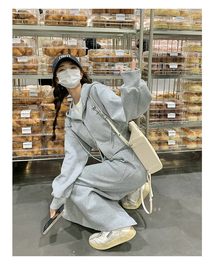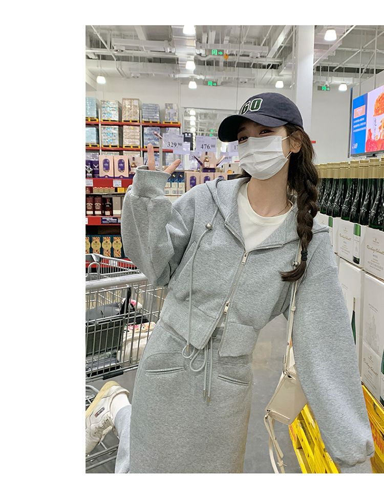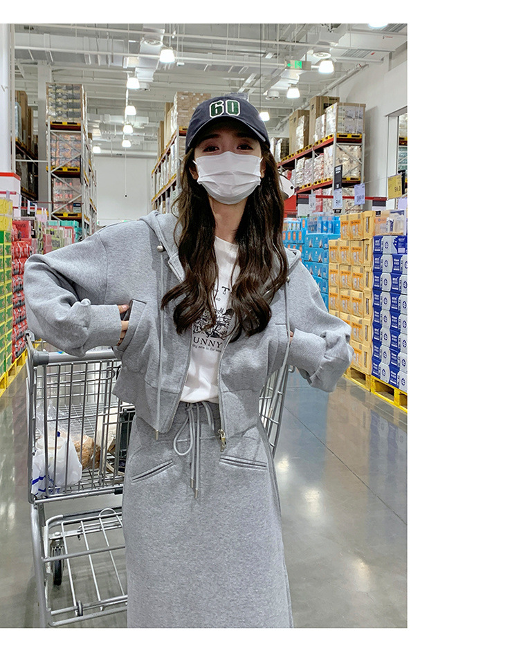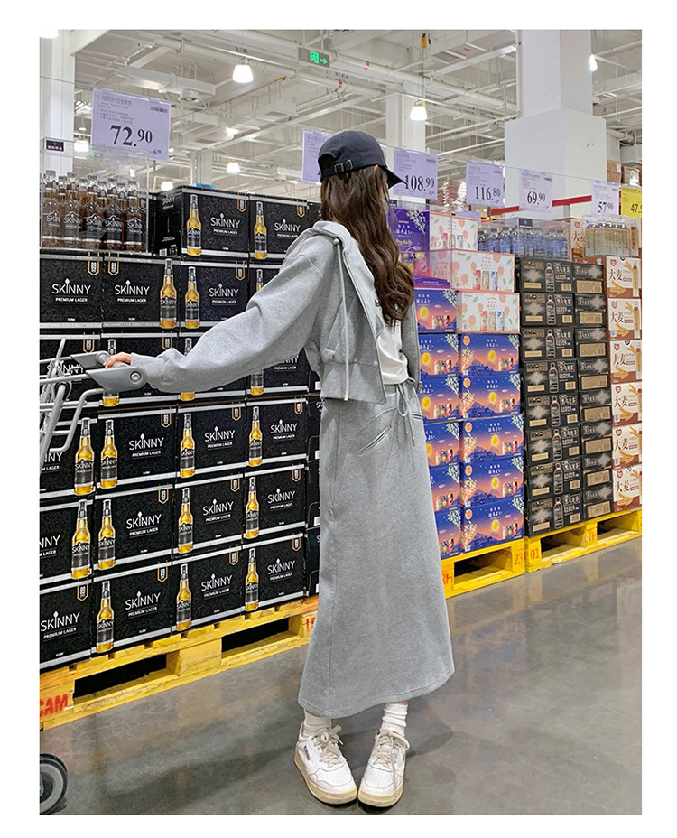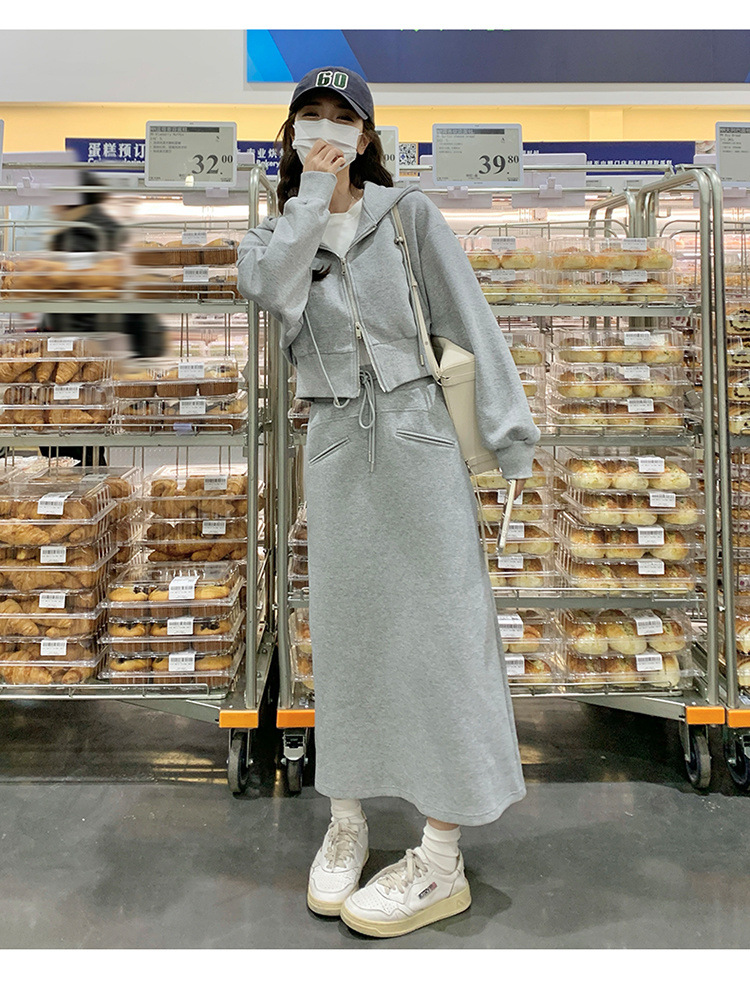 [10000 컬렉션] 회색 레저 스포츠 세트 여성의 봄과 가을 인기 시대 감소 아름다운 서양식 스커트 세트스토어 가기