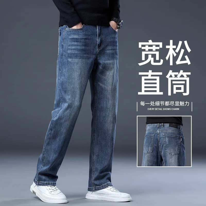 고급 청바지 남성 봄과 가을 느슨한 스트레이트 바지 캐주얼 중년 남성 바지 2025 봄 새 바지스토어 가기