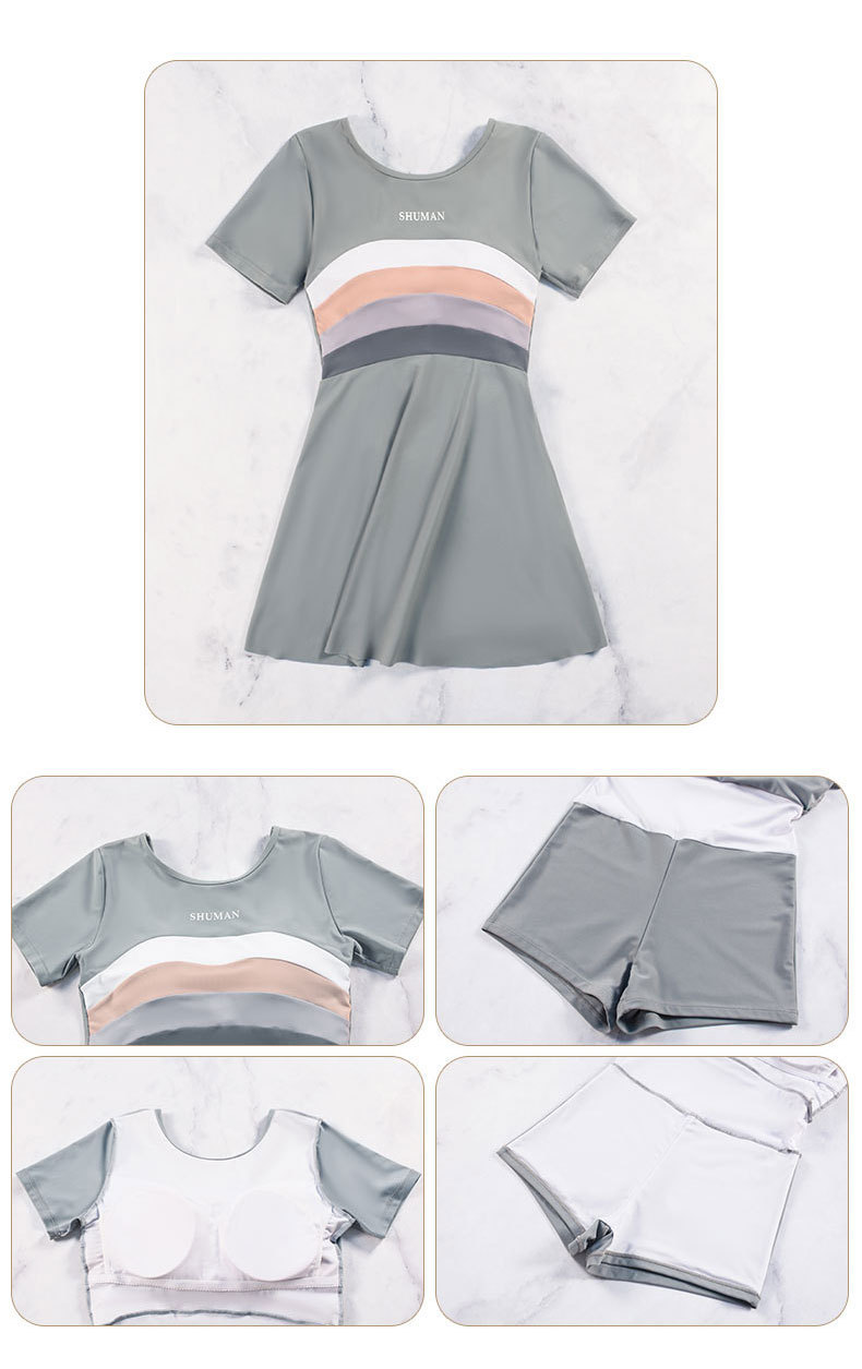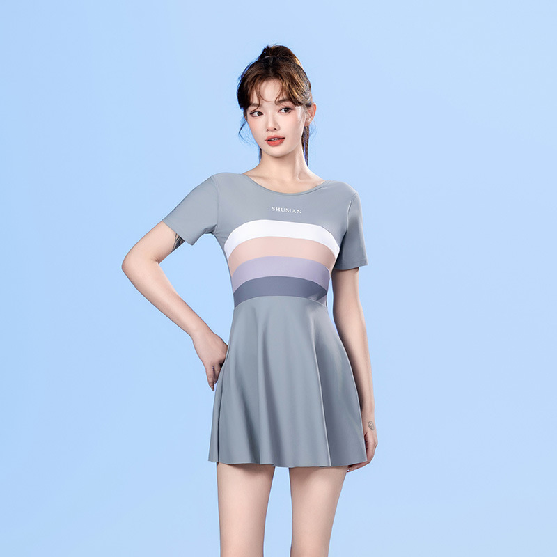 Shuman 패션 새로운 수영복 스포츠 스타일 스커트 스타일 원피스 작은 가슴 섹시한 보수적 슬리밍 온천 여성 수영복