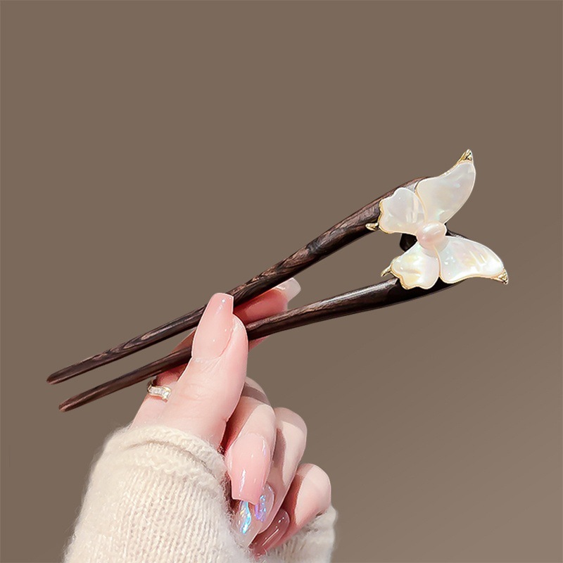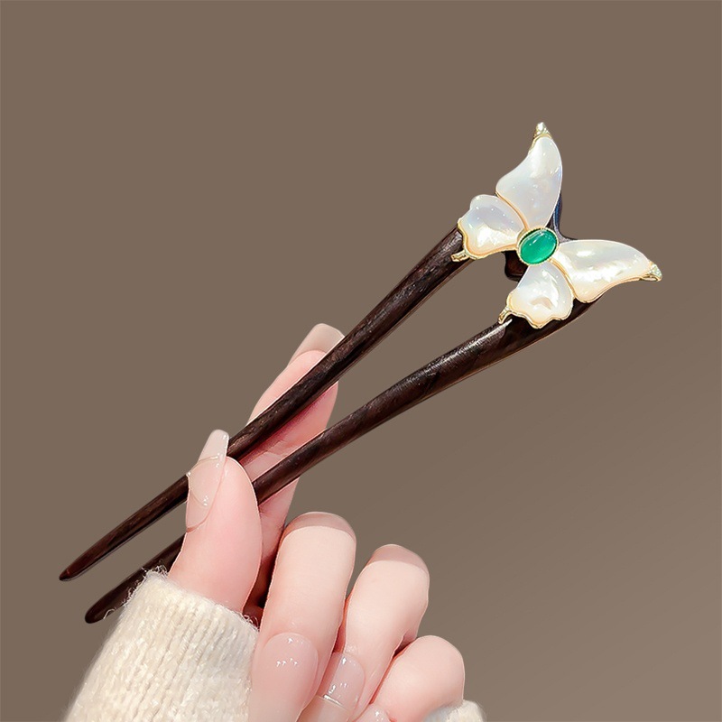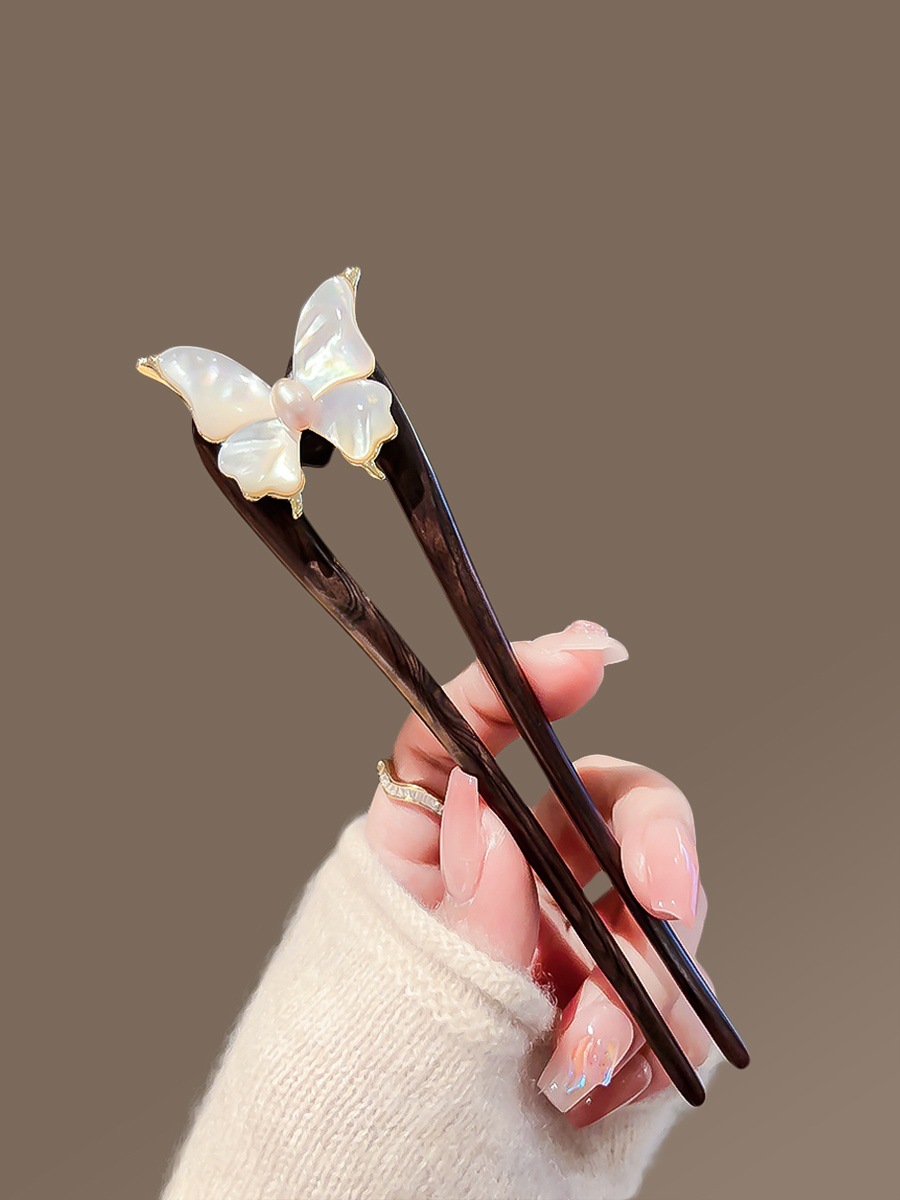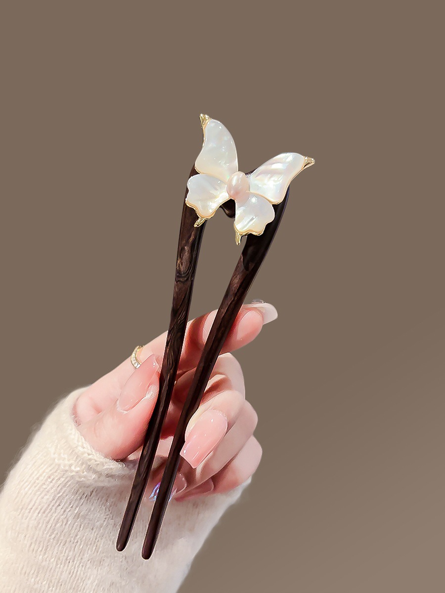 Guofeng 나비 Fritillaria 헤어핀 하이 엔드 여성 기질 행 샌달 우드 헤어핀 더블 헤어핀 헤어 볼 헤드 U 자형 헤어 액세서리