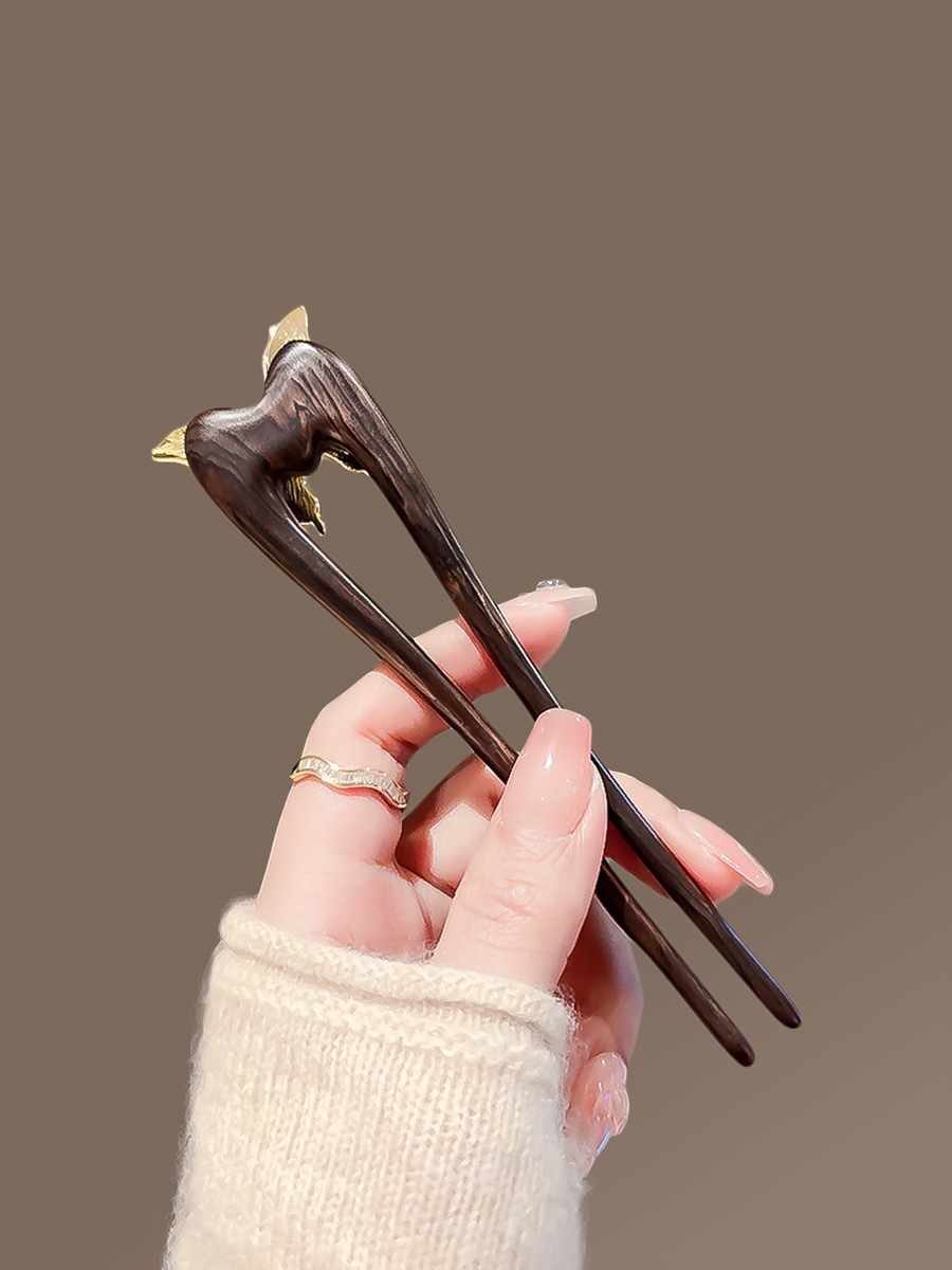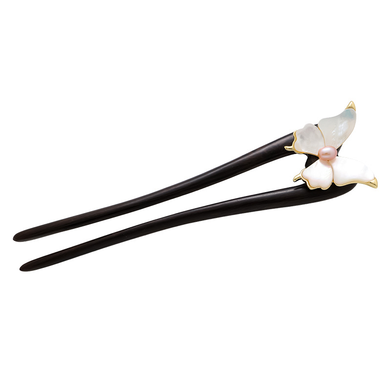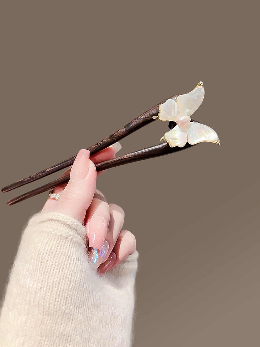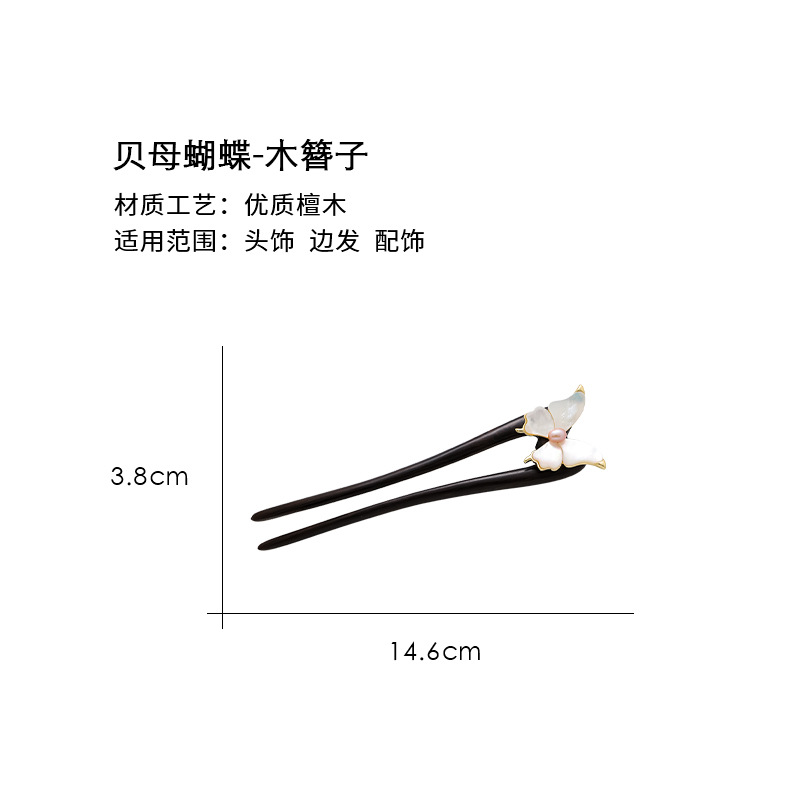 Guofeng 나비 Fritillaria 헤어핀 하이 엔드 여성 기질 행 샌달 우드 헤어핀 더블 헤어핀 헤어 볼 헤드 U 자형 헤어 액세서리