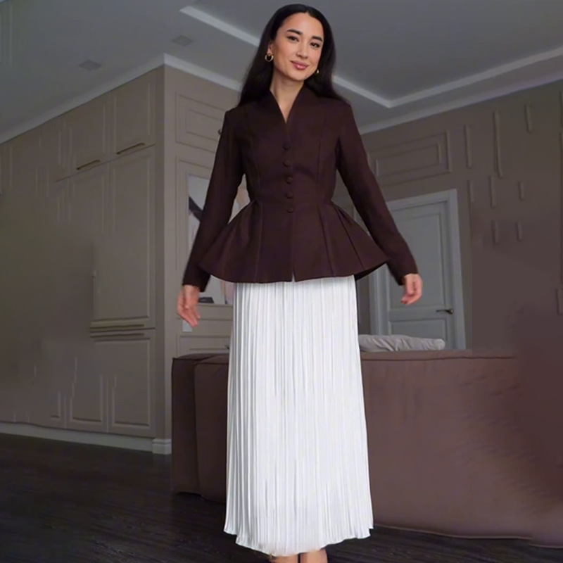 2025 유럽과 미국 아마존 국경 대외 무역 여성의 새로운 단색 긴 소매 멀티 창고 재킷 엉덩이 원피스 세트