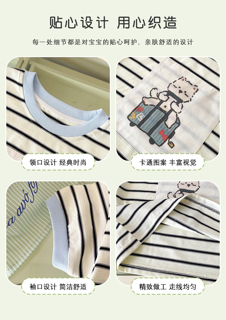 [재고 있음] XY253031 티셔츠 + XK253008 데님 오버올 남아 스트라이프 반팔 오버올 슈트스토어 가기