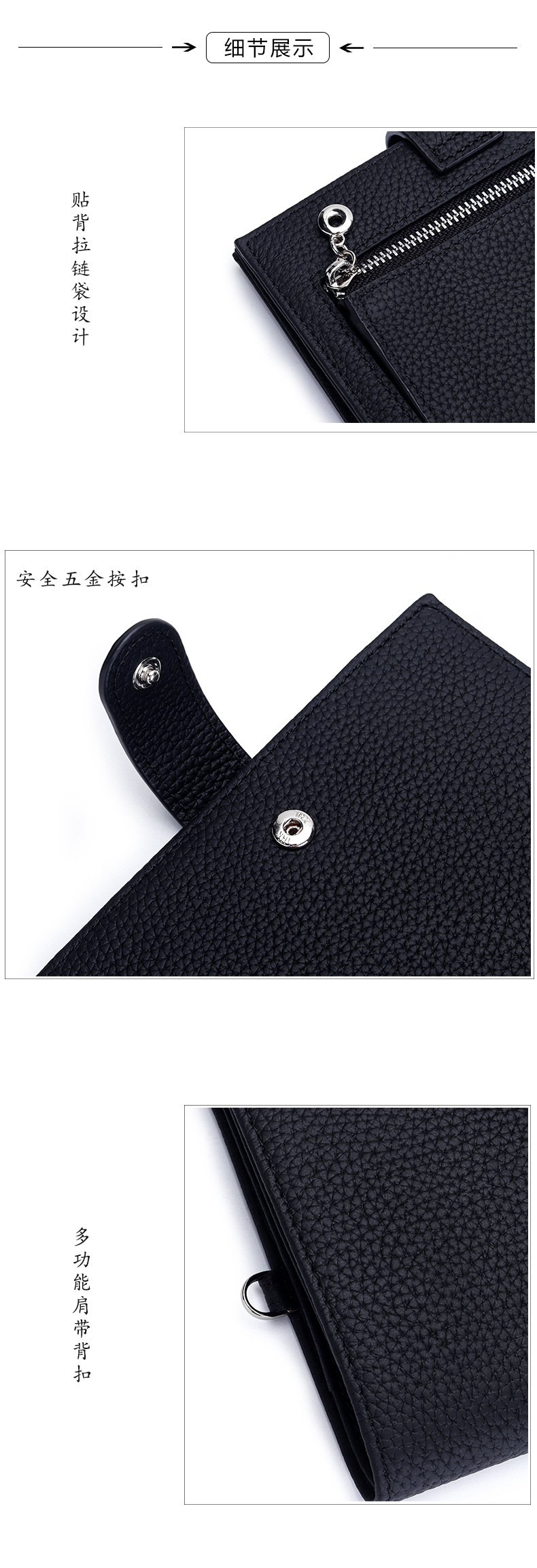 2. 触摸。使用手直接接触皮具用品,感觉皮的手感,一般皮具表面具有大小不一样的