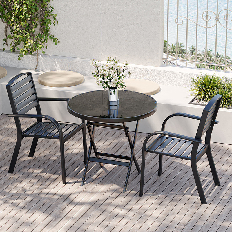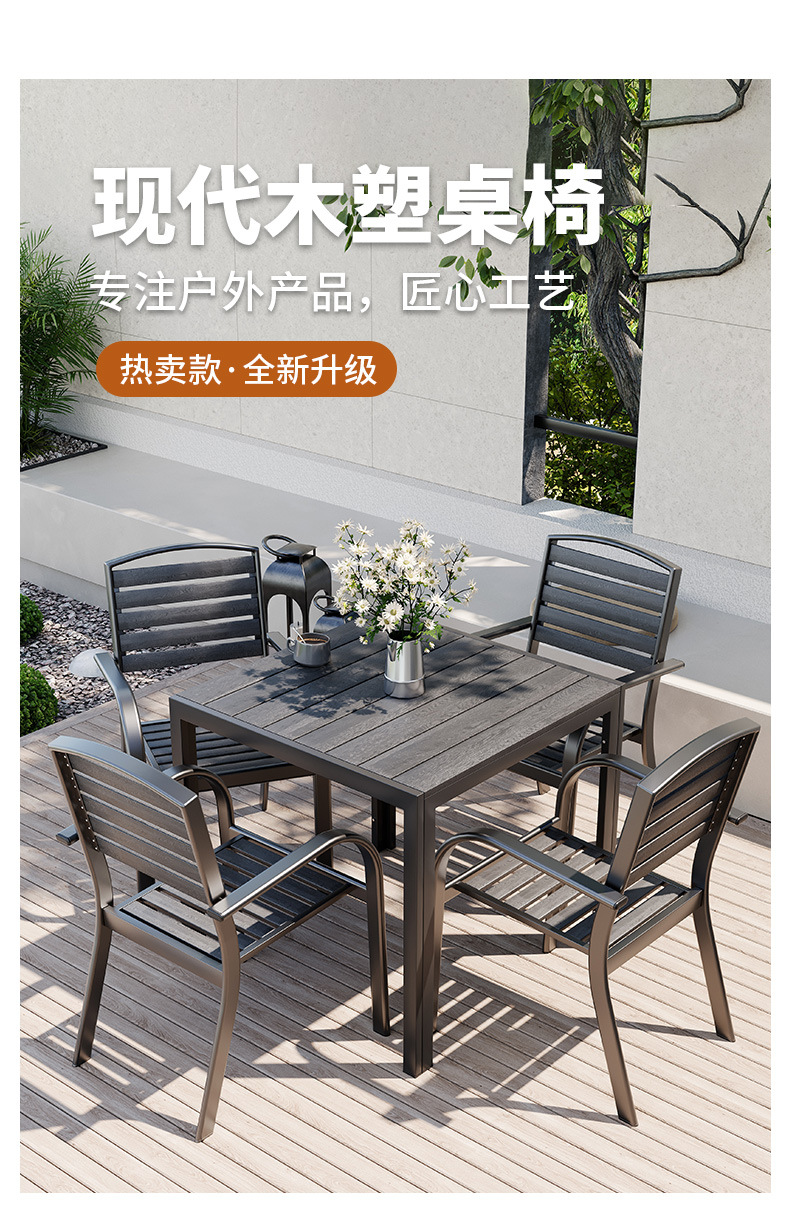 야외 테이블과 의자, 안뜰, 야외 정원, 카페 테이블, 플라스틱 목재 방수, 야외 발코니 테이블과 의자, 라이트 럭셔리 스타일스토어 가기