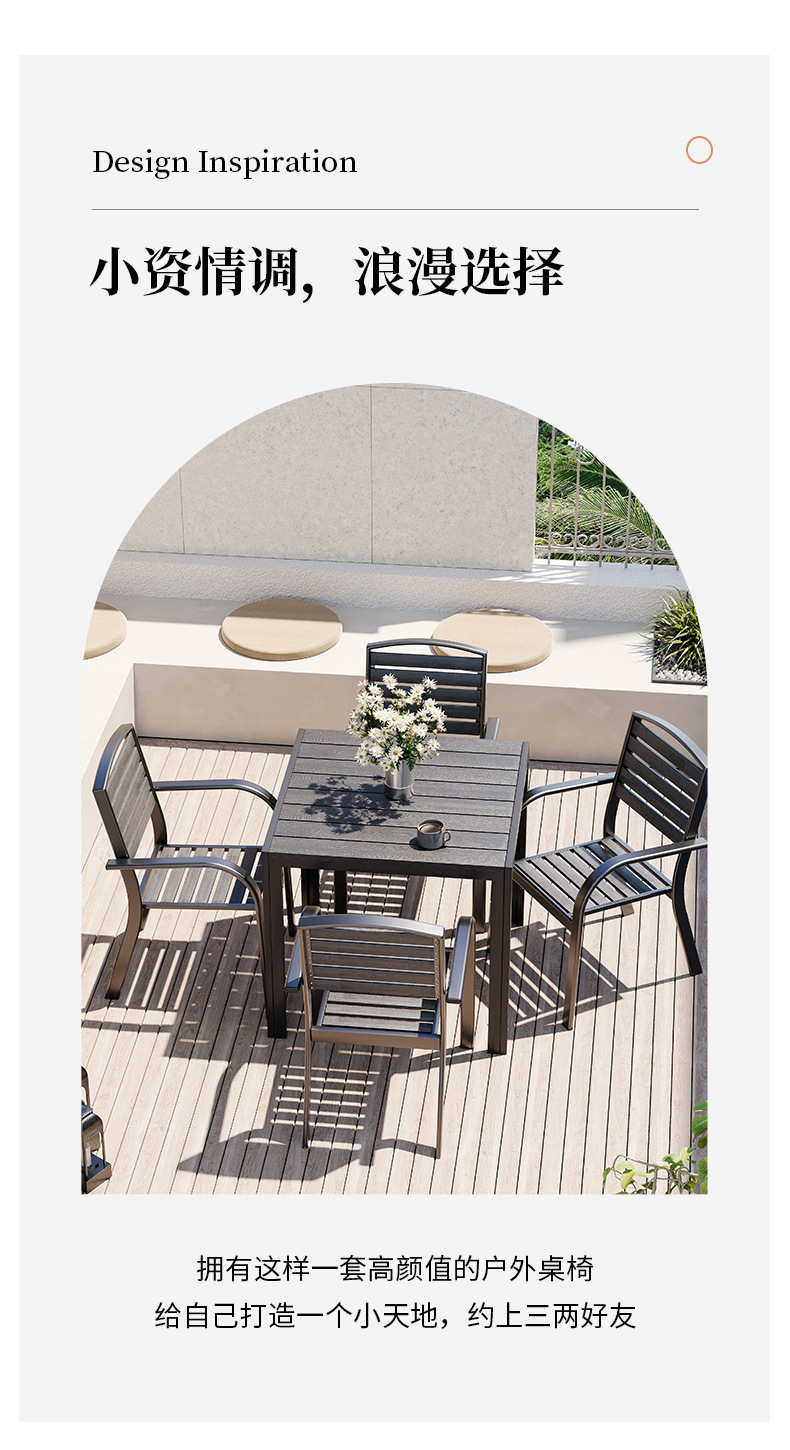 야외 테이블과 의자, 안뜰, 야외 정원, 카페 테이블, 플라스틱 목재 방수, 야외 발코니 테이블과 의자, 라이트 럭셔리 스타일