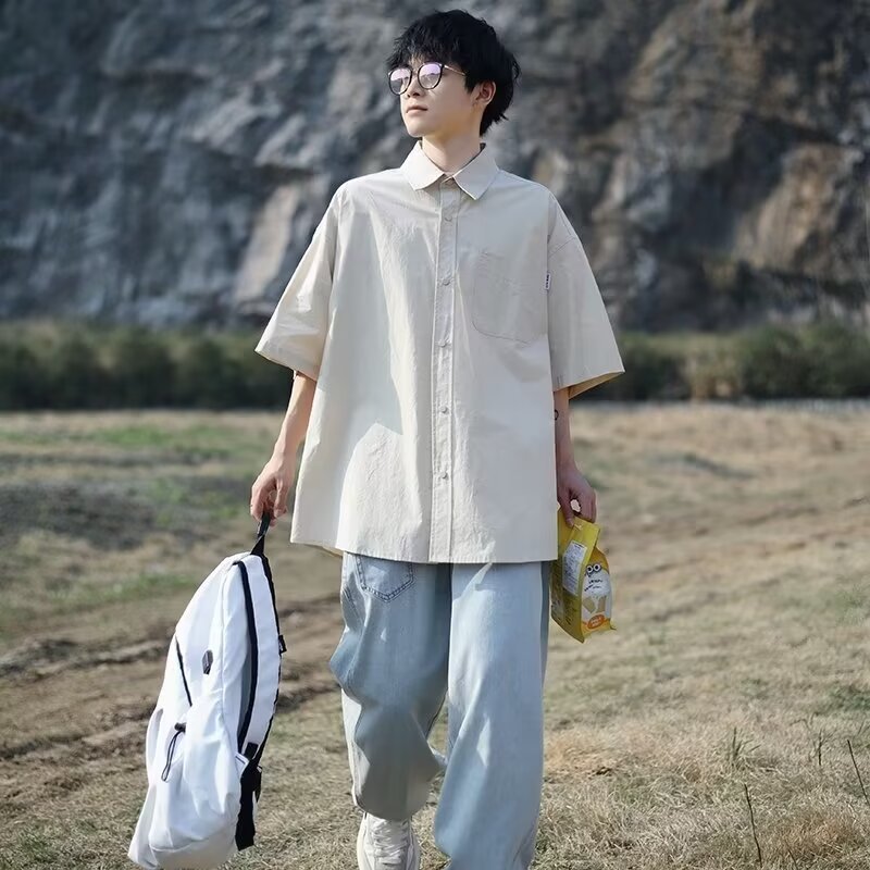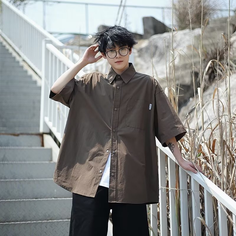 일본 도시 소년 셔츠 여름 카키 레트로 반팔 셔츠 하이 엔드 센스 Faggot 핸섬 캐주얼 재킷
