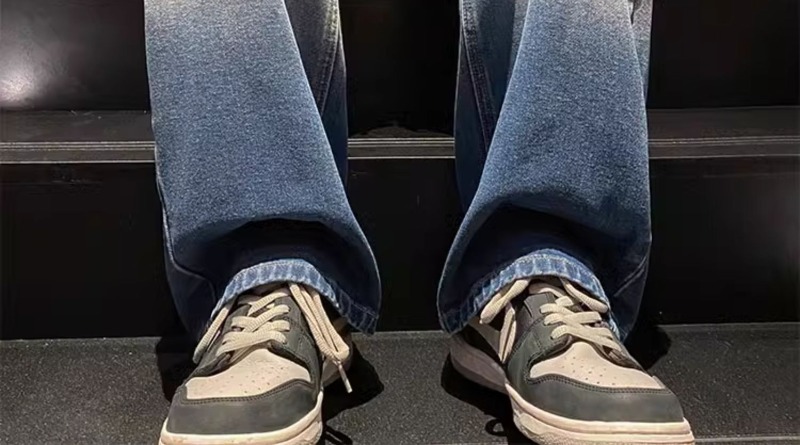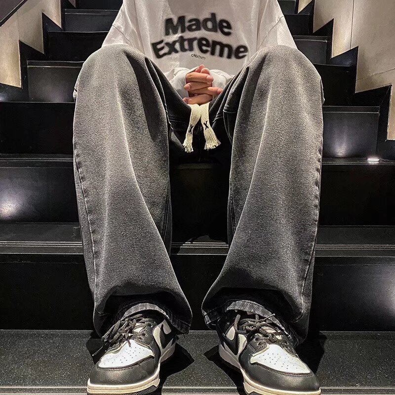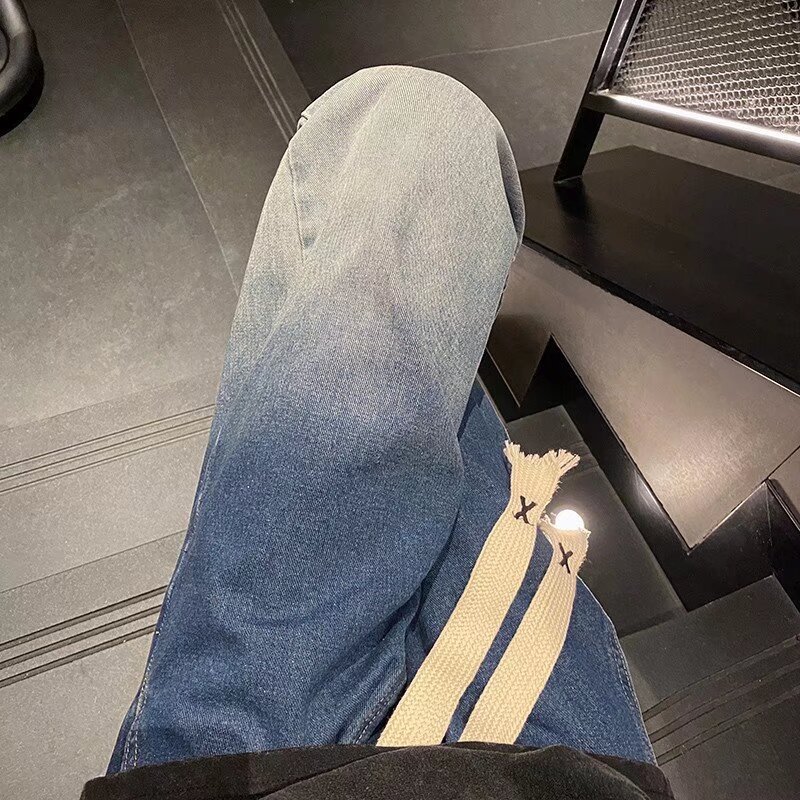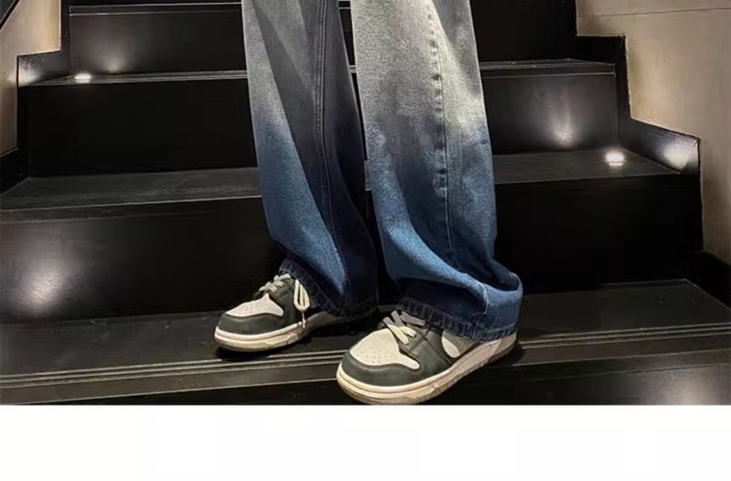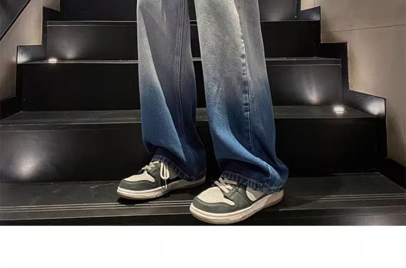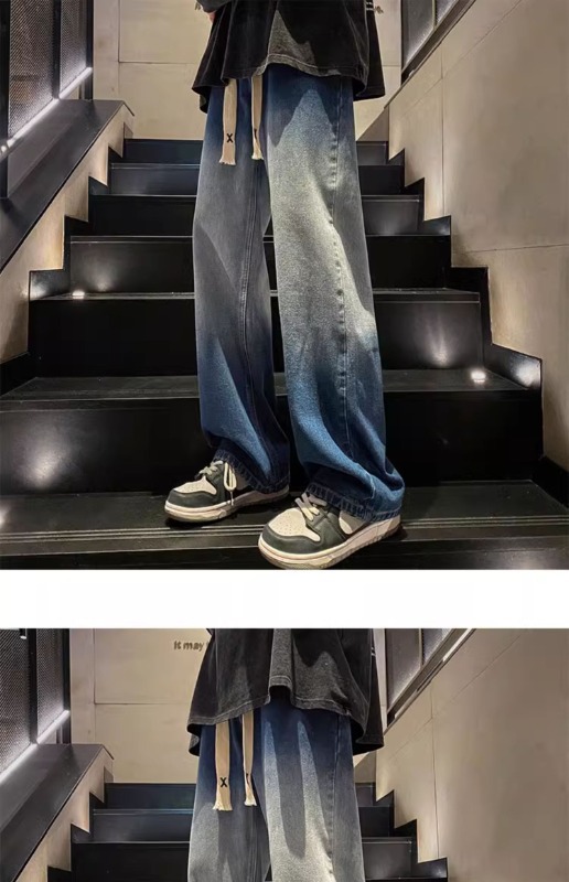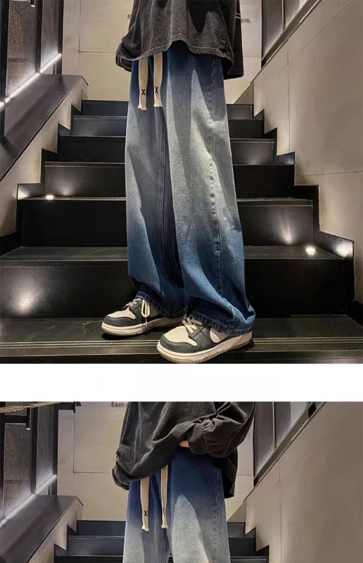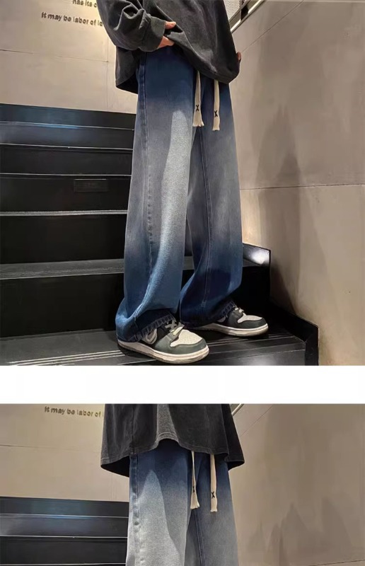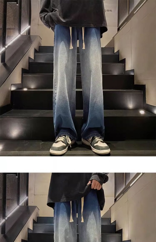 국경 간 그라디언트 청바지 남성 봄과 가을 새로운 미국 스타일 하이 스트리트 루즈 스트레이트 레그 와이드 레그 캐주얼 롱 팬츠