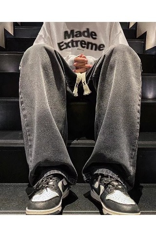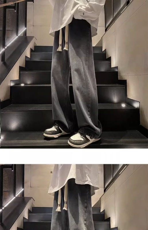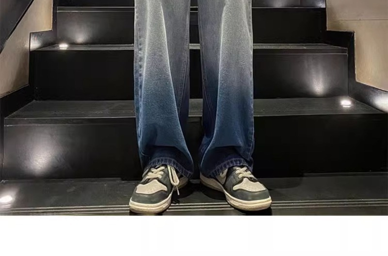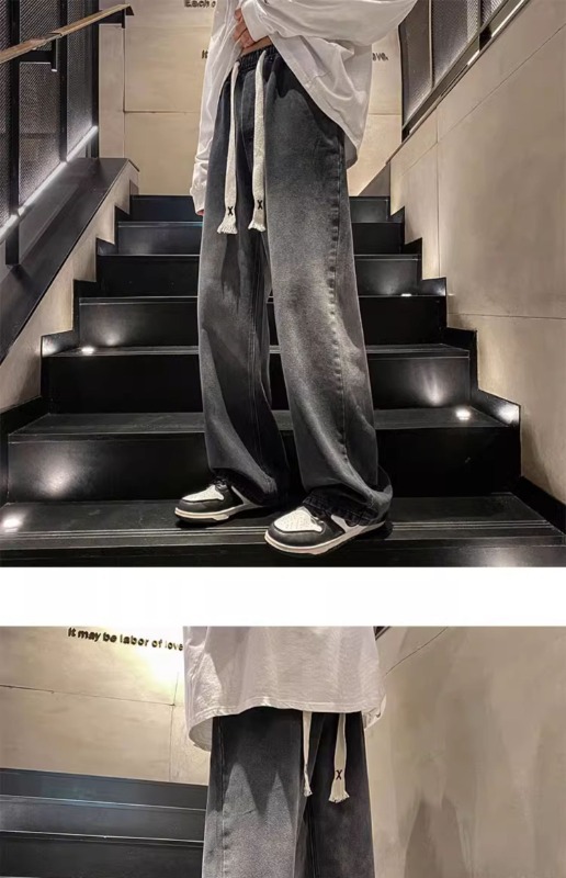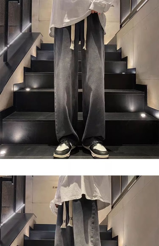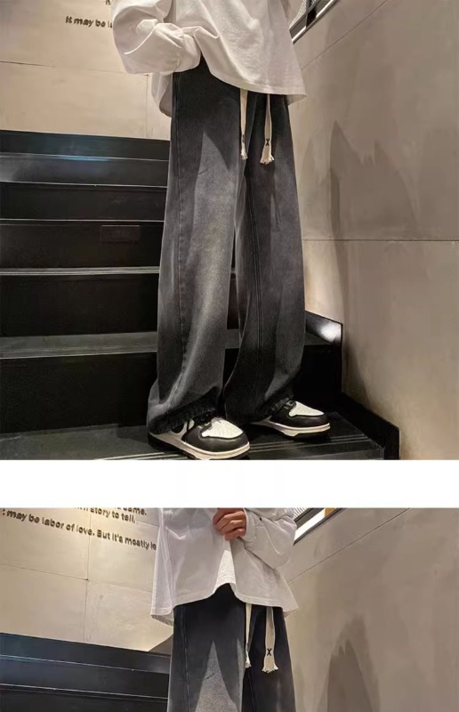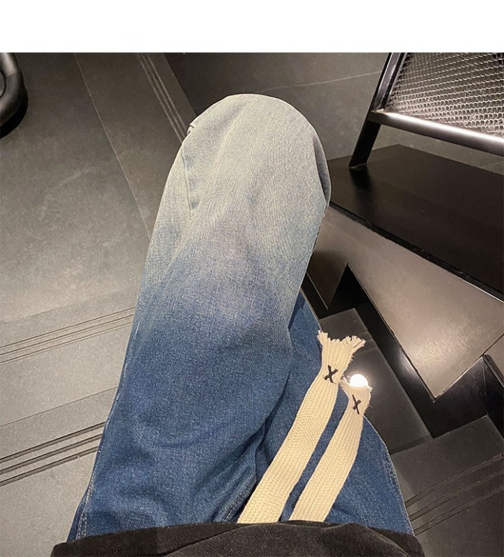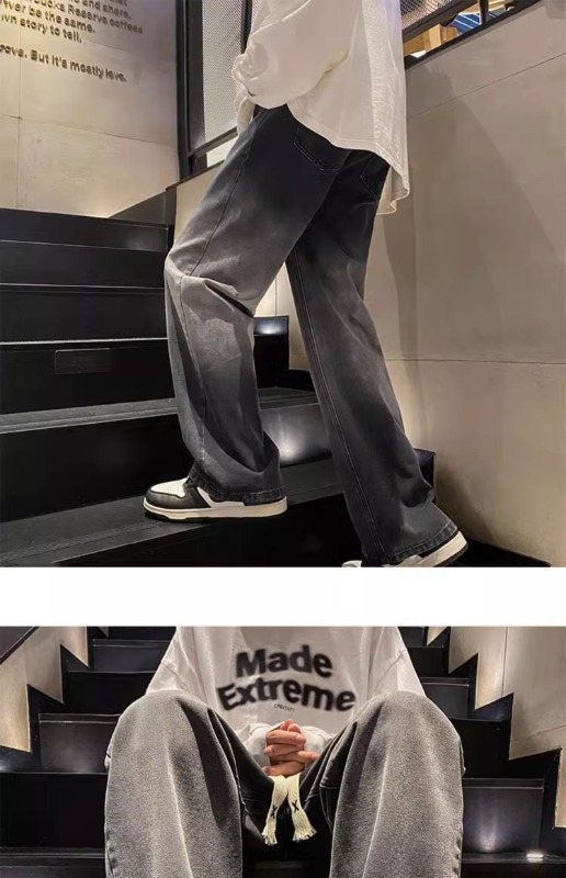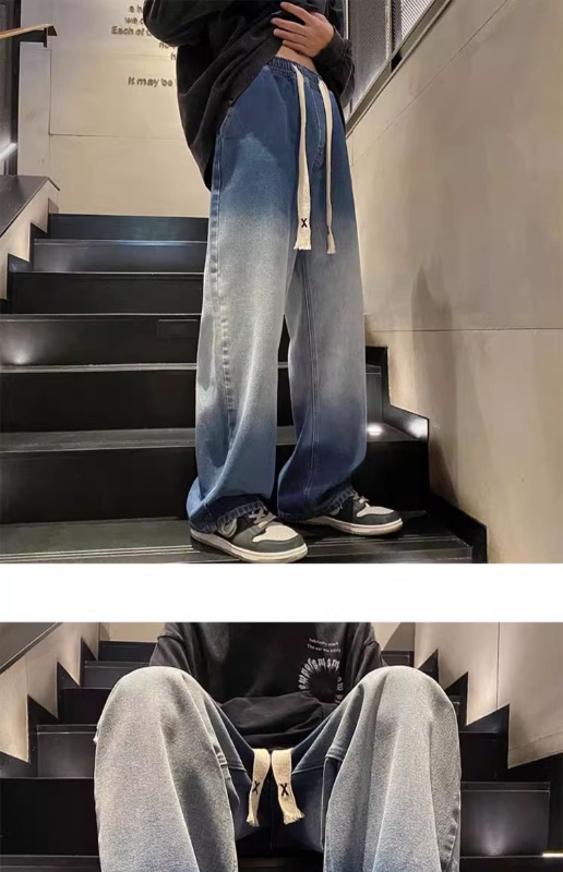 국경 간 그라디언트 청바지 남성 봄과 가을 새로운 미국 스타일 하이 스트리트 루즈 스트레이트 레그 와이드 레그 캐주얼 롱 팬츠스토어 가기