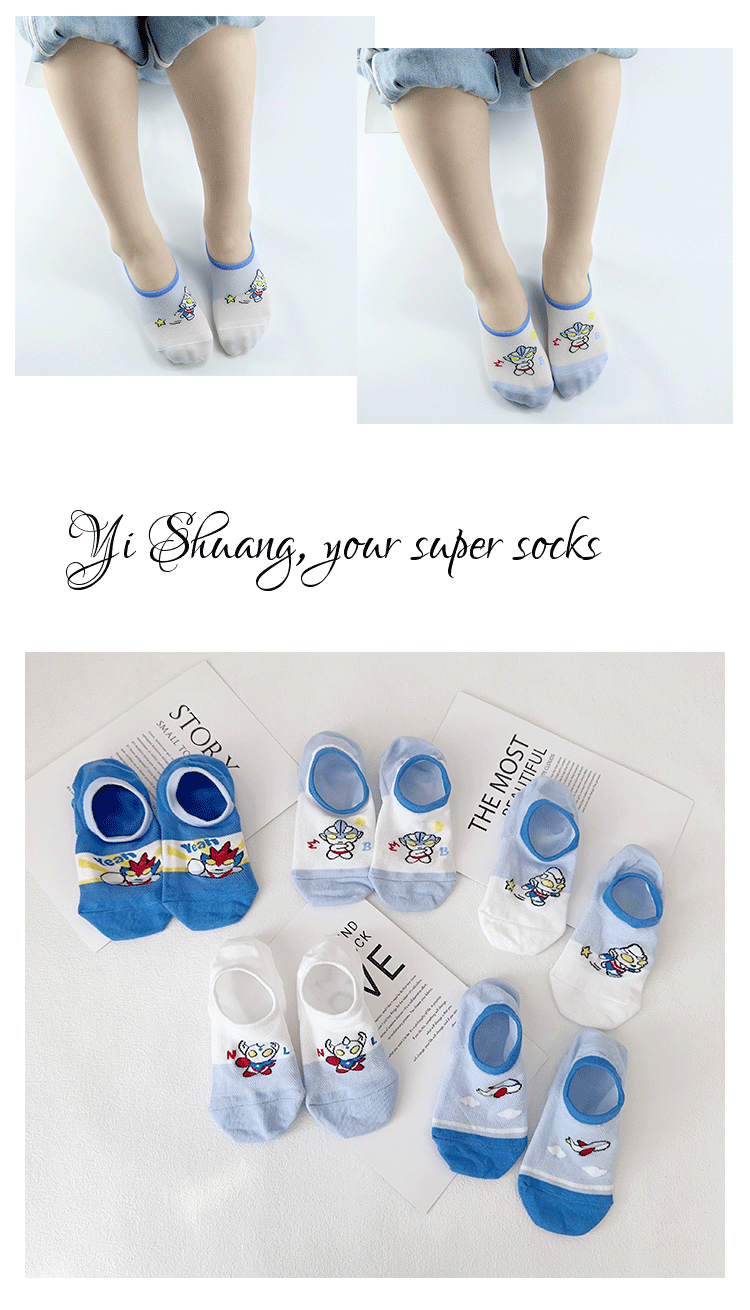 이족 쌍 어린이 양말 여름 메쉬 울트라 맨 보트 양말 Combed 코튼 보이즈 뼈없는 만화 입 얕은 보이지 않는 양말
