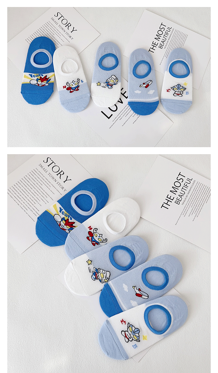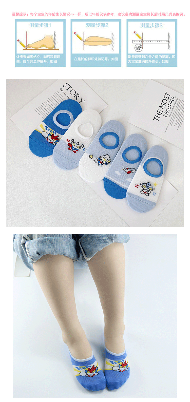 이족 쌍 어린이 양말 여름 메쉬 울트라 맨 보트 양말 Combed 코튼 보이즈 뼈없는 만화 입 얕은 보이지 않는 양말스토어 가기